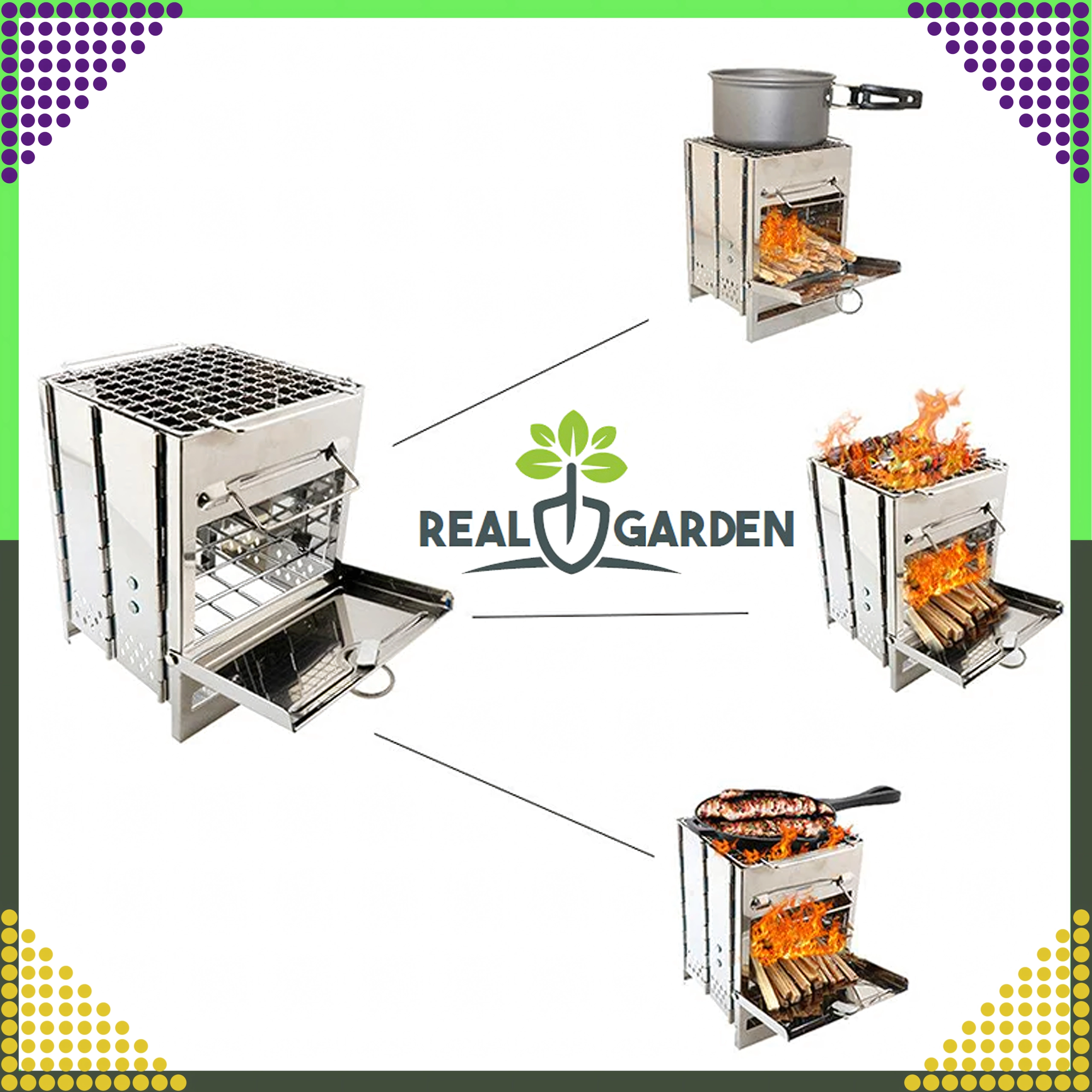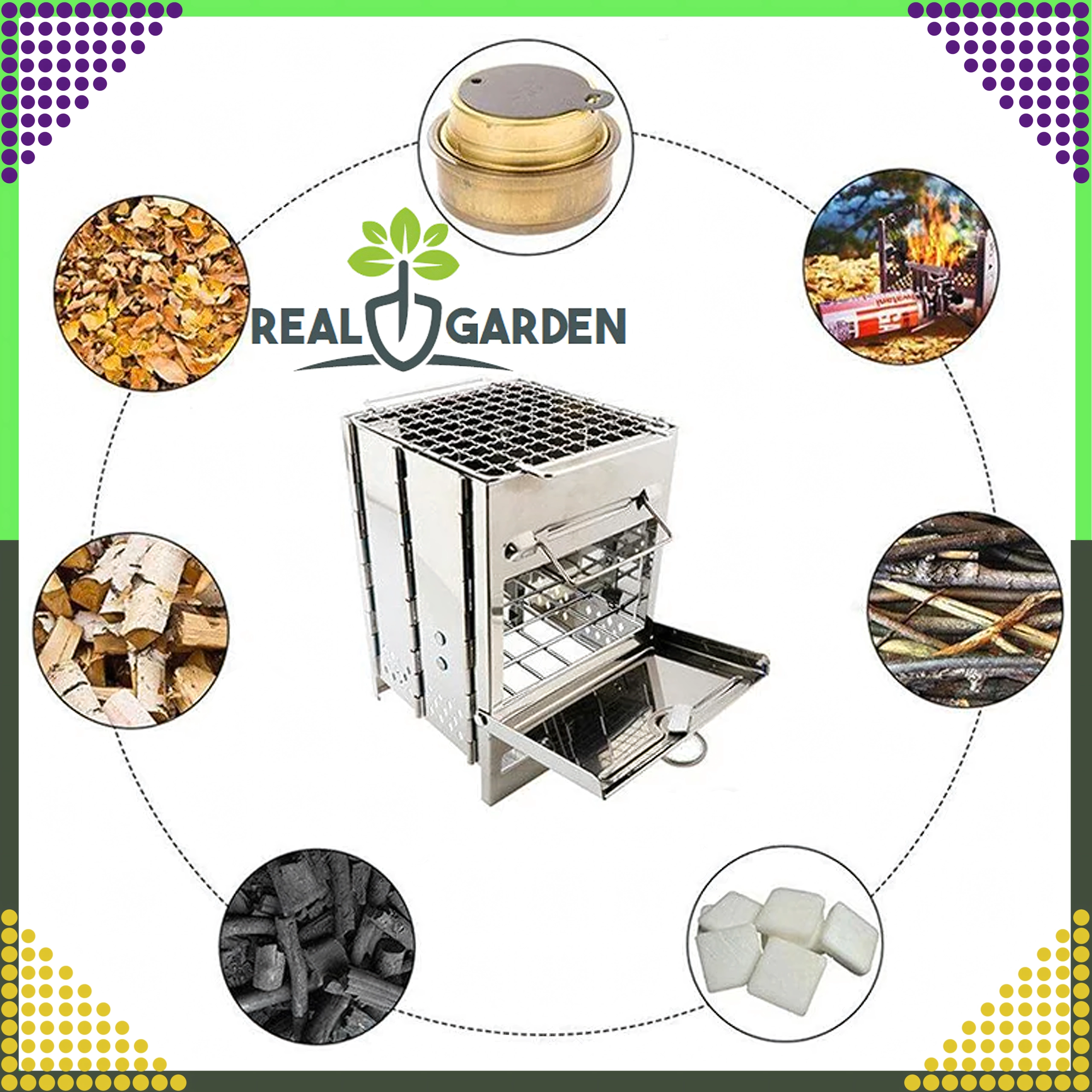 Η σόμπα καίει σχεδόν κάθε στερεό εύφλεκτο υλικό – ξύλο, κλαδοκάυσα, κουκουνάρια, φλοιό, χόρτα, φύλλα, χαρτί ή ξυλοκάρβουνο και μπρικέτες. Η συναρμολογούμενη κατασκευή χωρίς ανάγκη εργαλείων εξασφαλίζει εύκολη μεταφορά και αποθήκευση· στη συσκευασία θα βρείτε πρακτική τσάντα. Η επάνω σχάρα επιτρέπει την ασφαλή τοποθέτηση μικρότερων σκευών ή τη χρήση ως συμπαγές γκριλ για γρήγορο ψήσιμο.