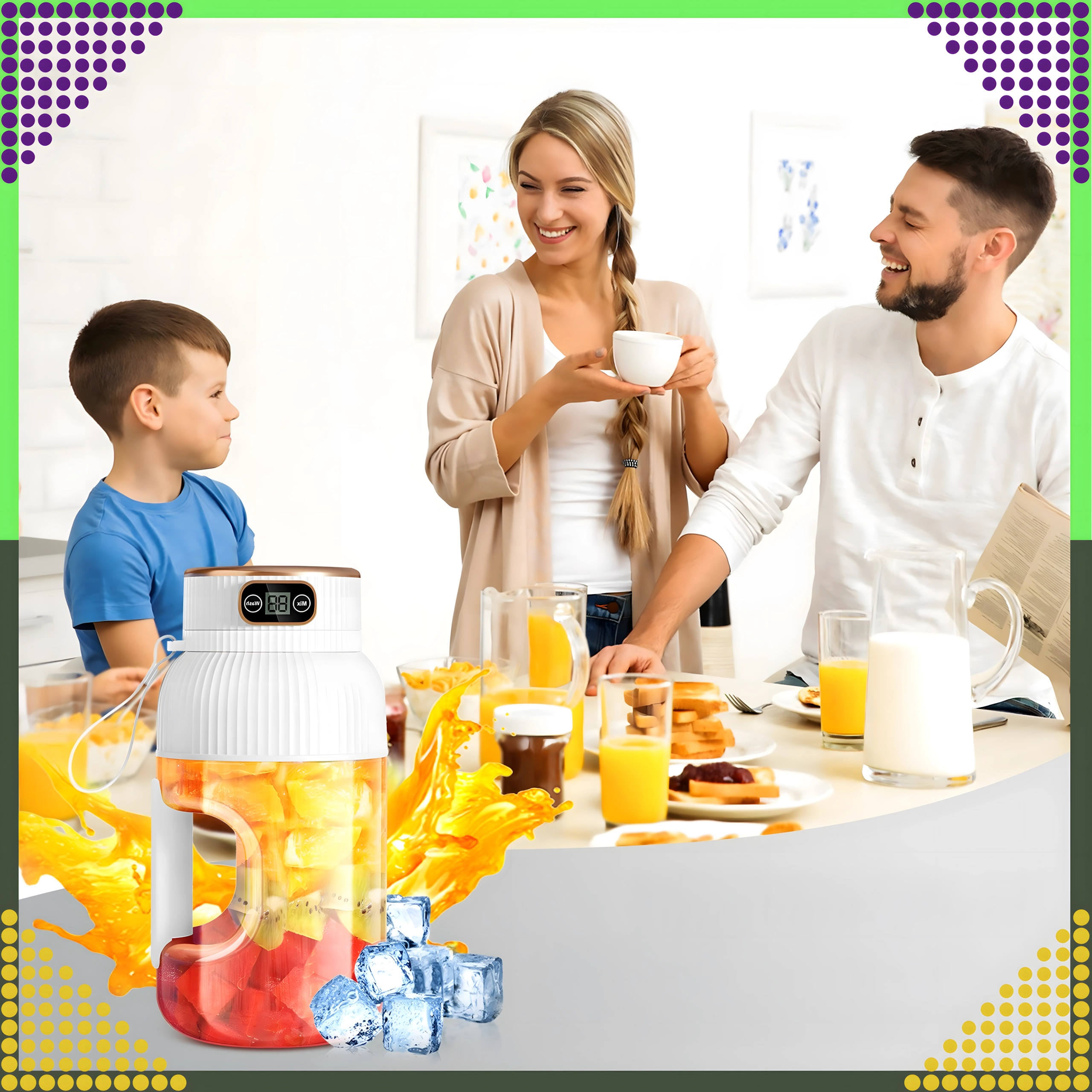 Η ενσωματωμένη οθόνη εμφανίζει τη λειτουργία ανάμειξης και την κατάσταση μπαταρίας. Άνετη λαβή και ελαφριά κατασκευή για εύκολη μεταφορά.