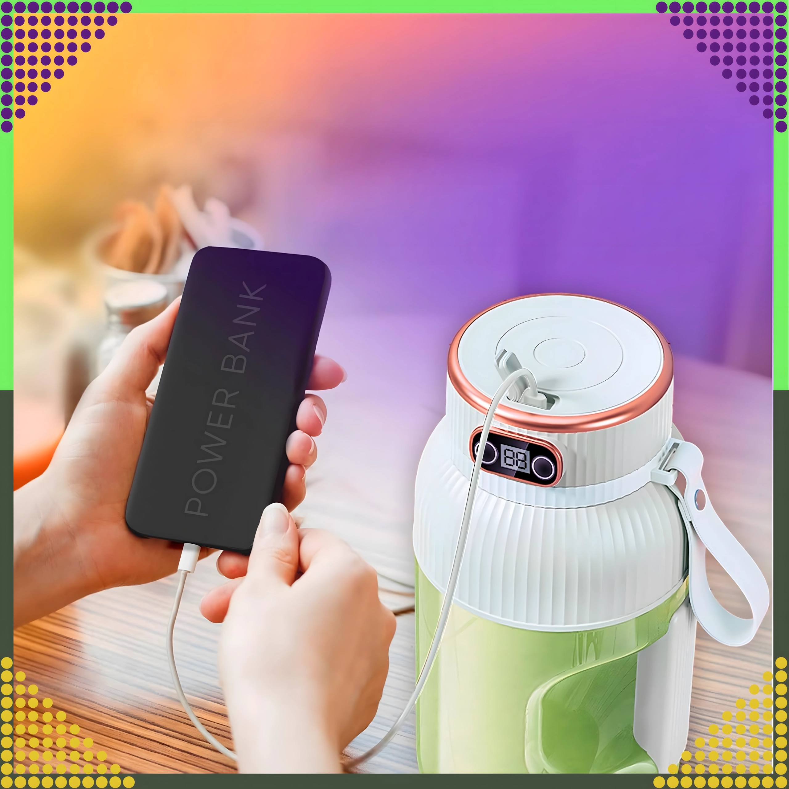Φορτίστε μέσω καλωδίου USB και ετοιμάστε ροφήματα οπουδήποτε – στο γραφείο, στο σπίτι ή στη φύση. Ιδανικός σύντροφος για εκδρομές.