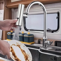 Χάρη στον συμβατό αντάπτορα, το συνδέετε στις περισσότερες τυπικές βρύσες κουζίνας. Η ποιοτική κατασκευή εξασφαλίζει αντοχή και σταθερή απόδοση, ενώ το περλατέρ μειώνει την κατανάλωση νερού χωρίς συμβιβασμούς στην αποτελεσματικότητα του ξεπλύματος.
