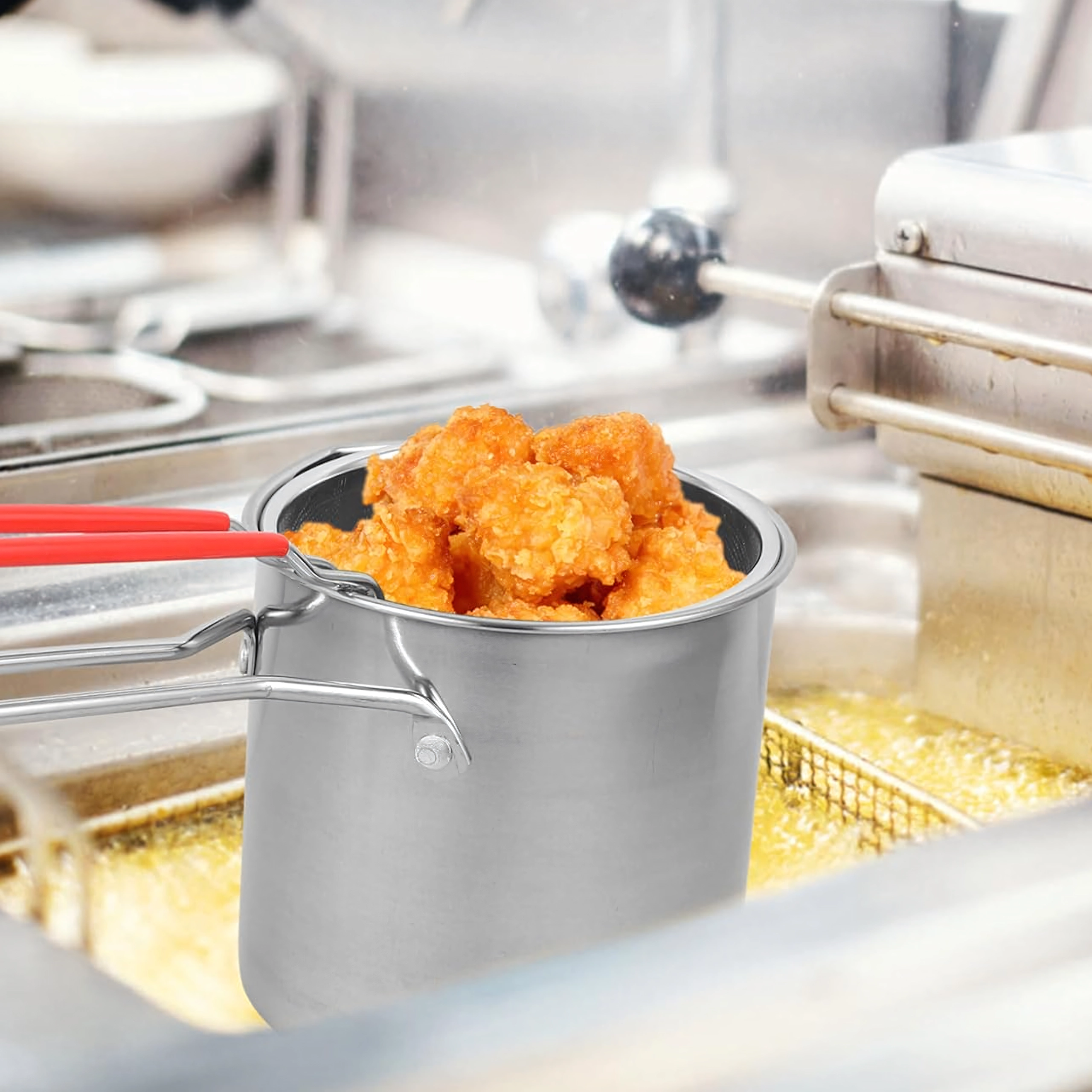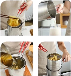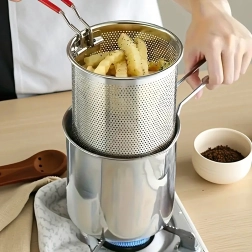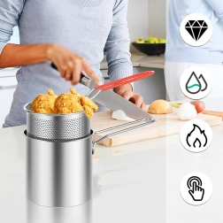 Το πρακτικό μίνι κατσαρολάκι με καλάθι τηγανίσματος προσφέρει ασφαλές και καθαρό τηγάνισμα αγαπημένων λιχουδιών – από πατάτες και κομμάτια κοτόπουλου έως λαχανικά. Το λεπτά διάτρητο καλάθι επιτρέπει γρήγορο στράγγισμα του λαδιού, ώστε το φαγητό να είναι τραγανό και λιγότερο λιπαρό. Το ανοξείδωτο ατσάλι 304 εγγυάται μακρά διάρκεια ζωής, εύκολη συντήρηση και ουδέτερη γεύση.