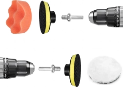 Καθολικό σετ pad γυαλίσματος διαμέτρου 80 mm για δράπανο, επαναφορτιζόμενο κατσαβίδι και αλοιφαδόρο. Οι διαφορετικές σκληρότητες αφρού και ο μάλλινος δίσκος εξασφαλίζουν αποτελεσματικό γυάλισμα βερνικιού, γυαλιού, μετάλλου και επίπλων με επαγγελματικό αποτέλεσμα και ακριβή έλεγχο.