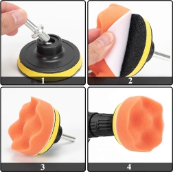 Αυτό το πρακτικό σετ 11 τεμαχίων σφουγγαριών γυαλίσματος με αντάπτορα επιτρέπει την ταχεία αφαίρεση μικρών γρατσουνιών, την αποκατάσταση της γυαλάδας και την ομοιόμορφη εφαρμογή κεριού ή πάστας. Η διαφορετική πυκνότητα και δομή του αφρού είναι ιδανική για στάδια από κοπή έως τελικό φινίρισμα, ενώ το fleece/μαλλί επιταχύνει το γυάλισμα και αυξάνει τη γυαλάδα.