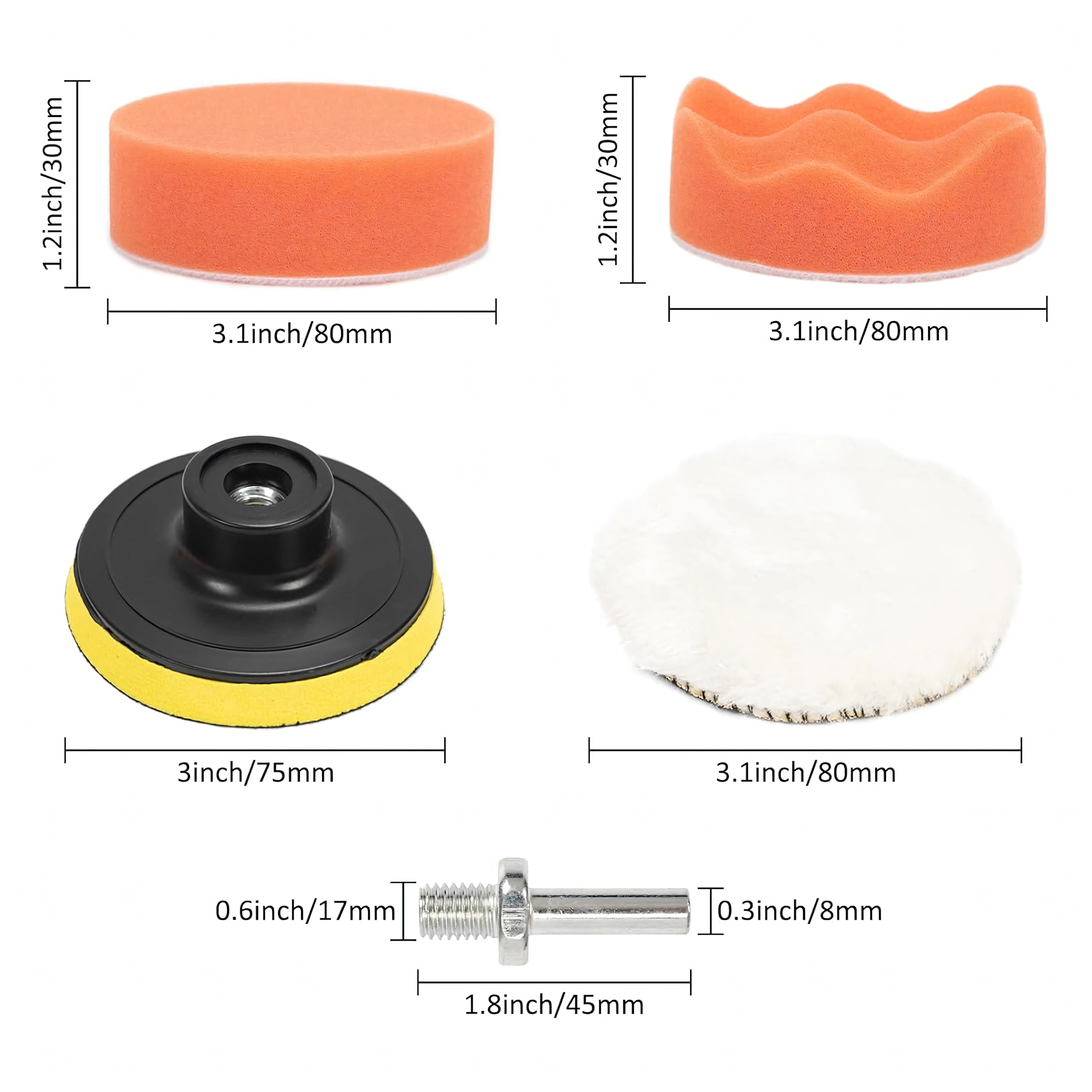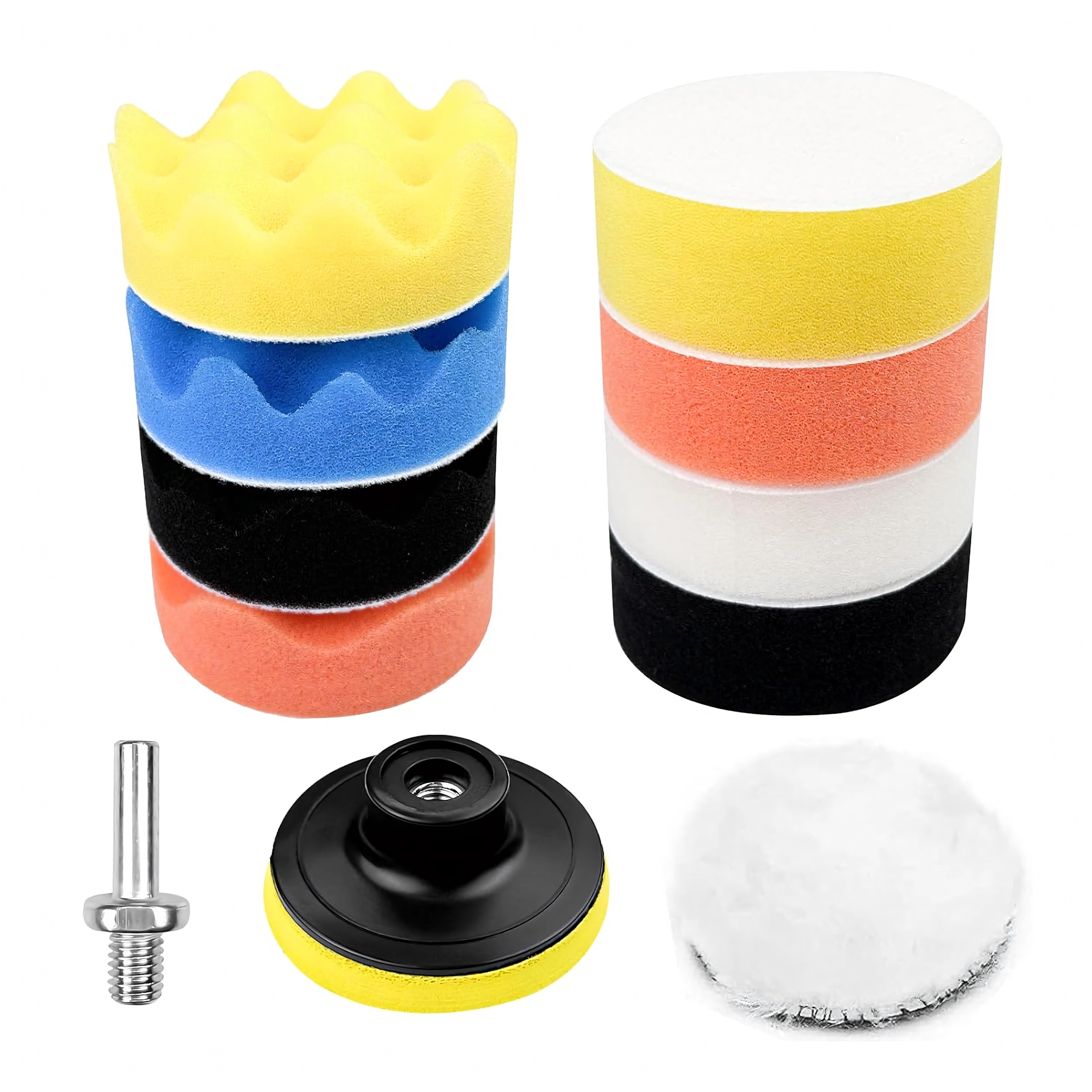 - 11 τεμ. (αφρώδη pads διαφορετικής σκληρότητας + μάλλινος/fleece δίσκος, backing, αντάπτορας)