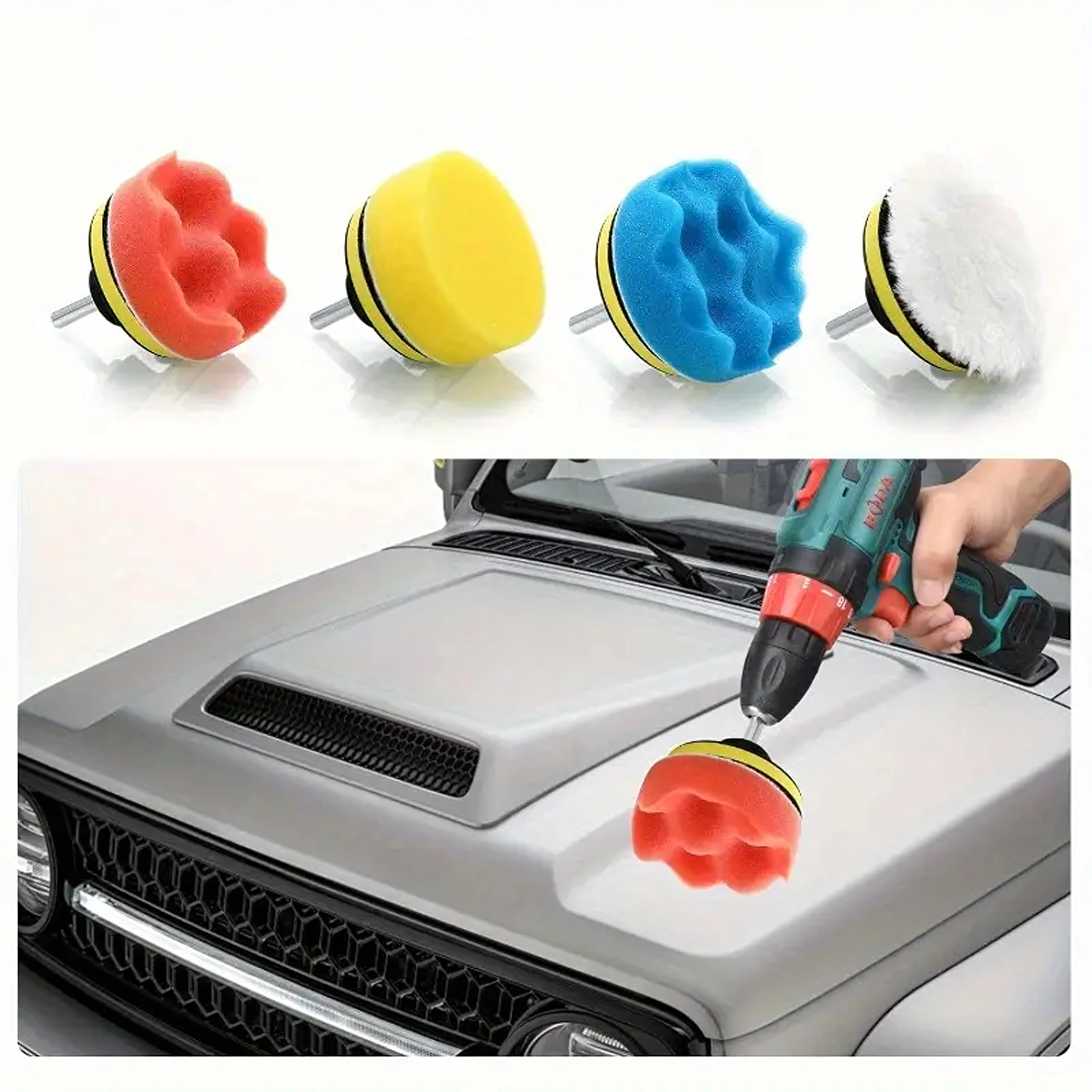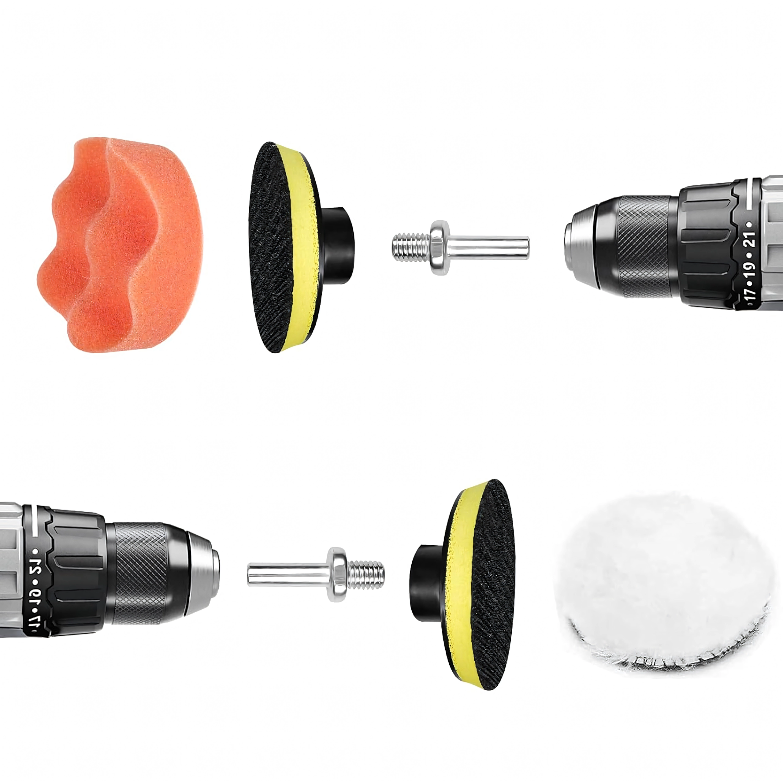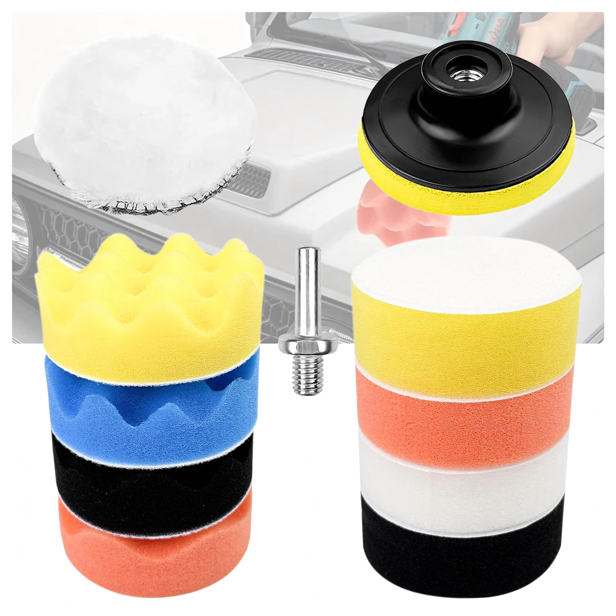 Το σετ περιλαμβάνει αφρούς διαφορετικών πυκνοτήτων και μάλλινο δίσκο – από διόρθωση ατελειών έως τελικό φινίρισμα και υψηλή γυαλάδα χωρίς ολογράμματα.