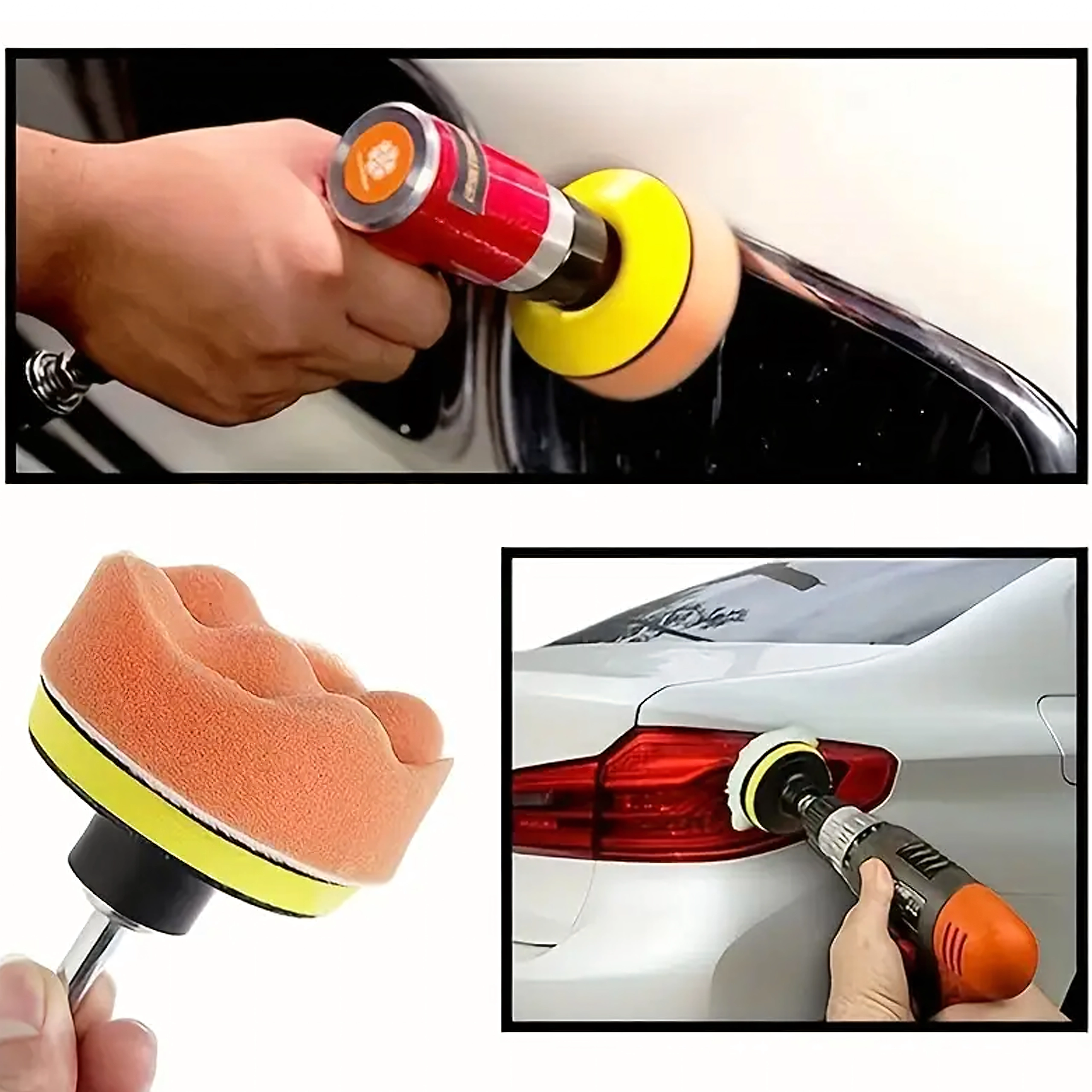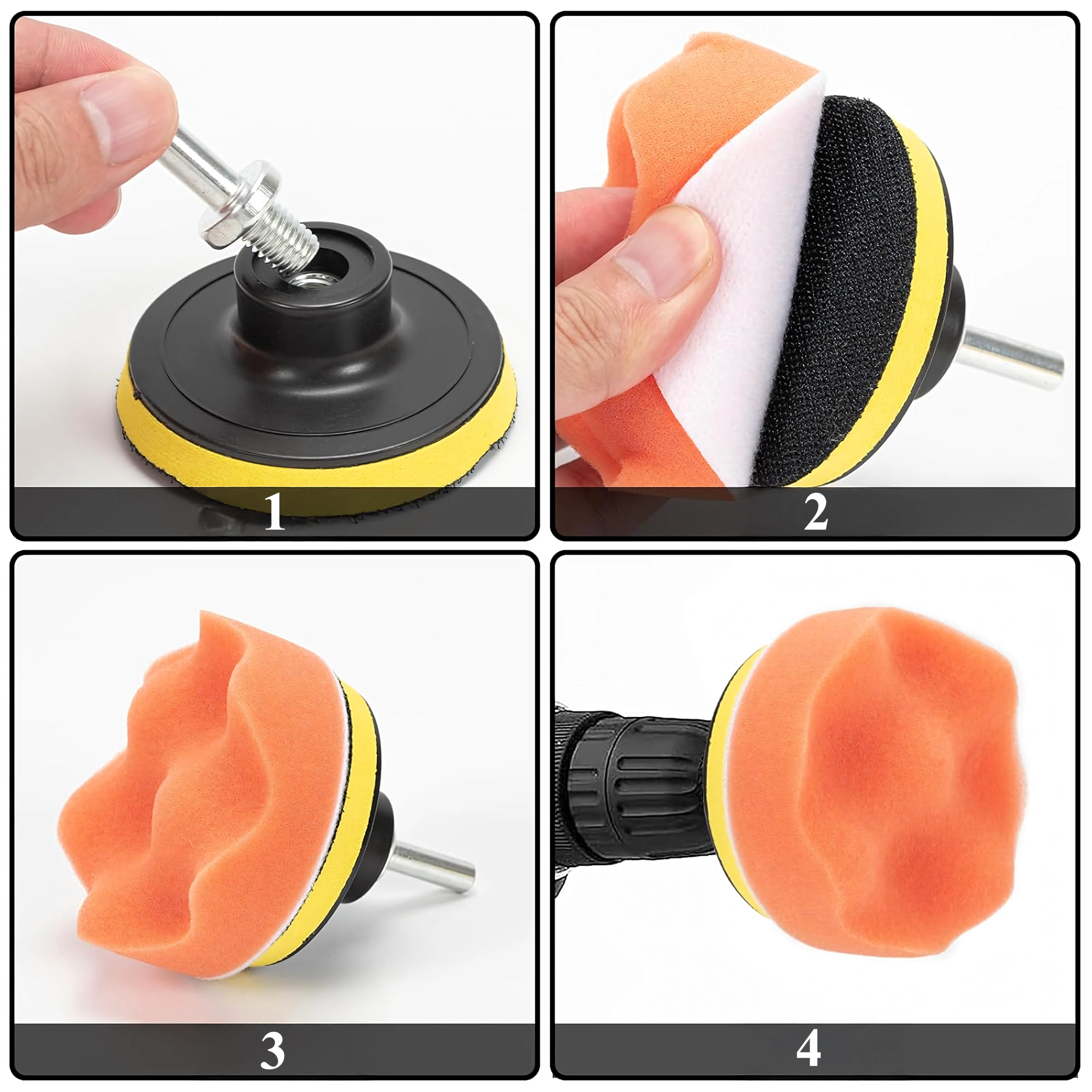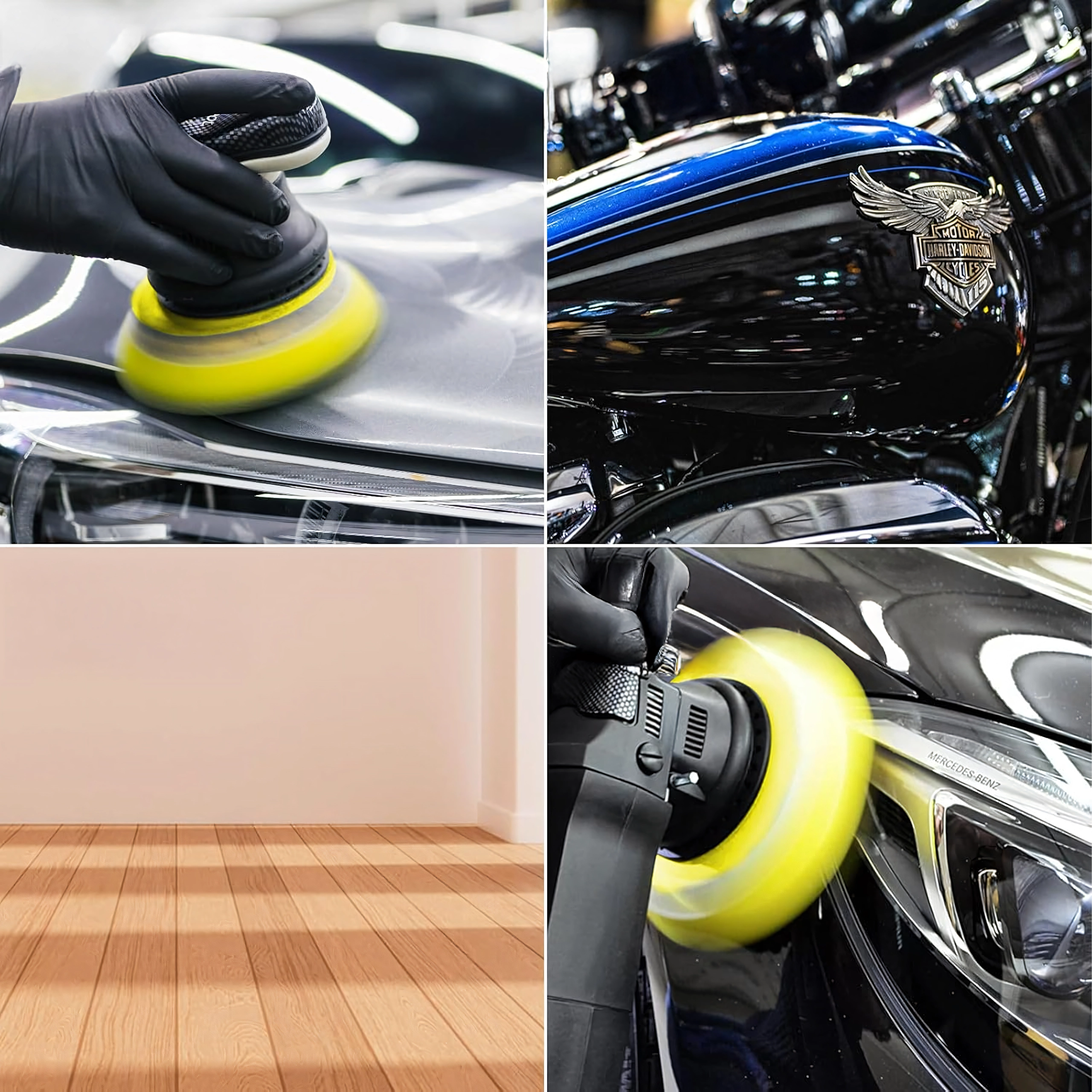 Το σετ περιλαμβάνει αφρούς διαφορετικών πυκνοτήτων και μάλλινο δίσκο – από διόρθωση ατελειών έως τελικό φινίρισμα και υψηλή γυαλάδα χωρίς ολογράμματα.