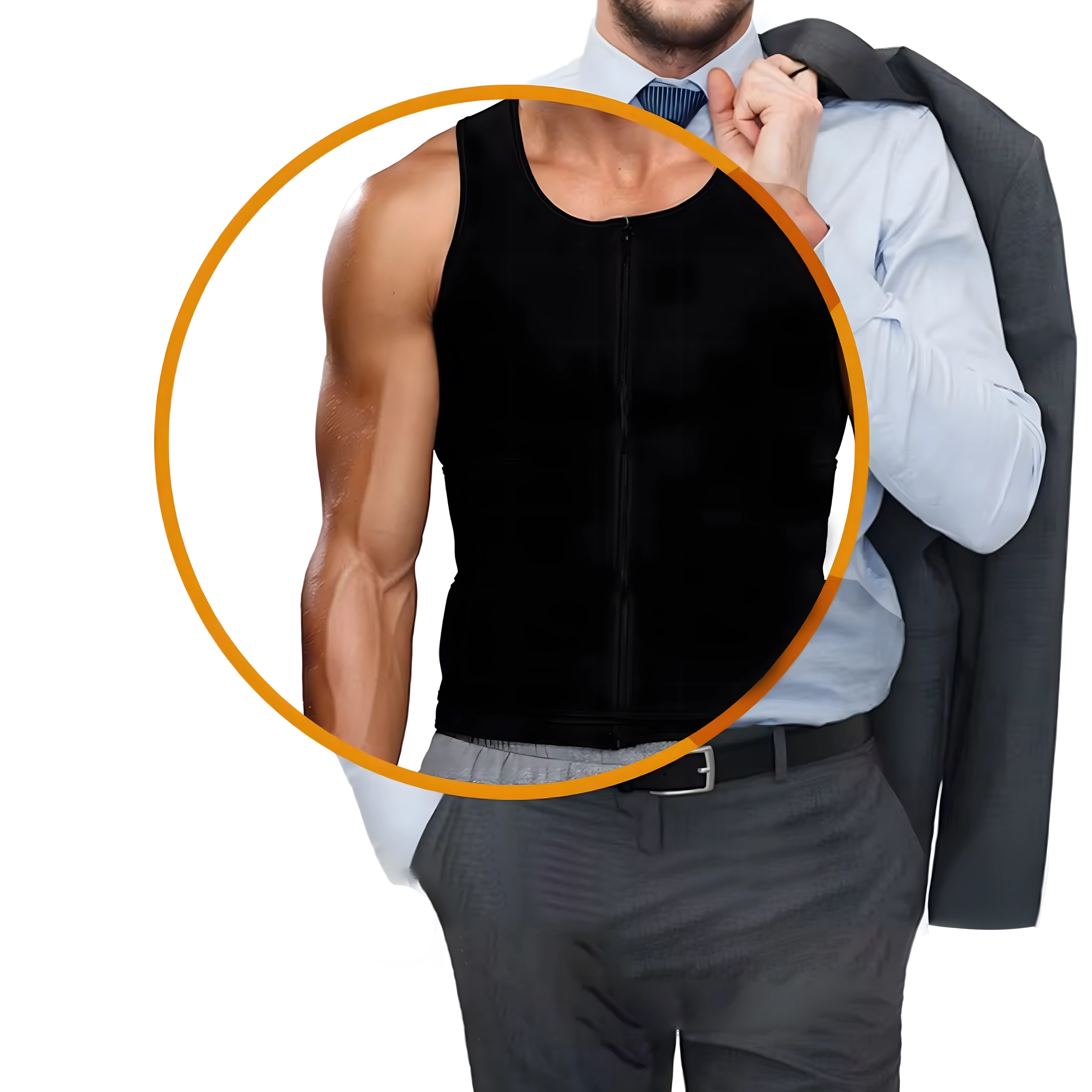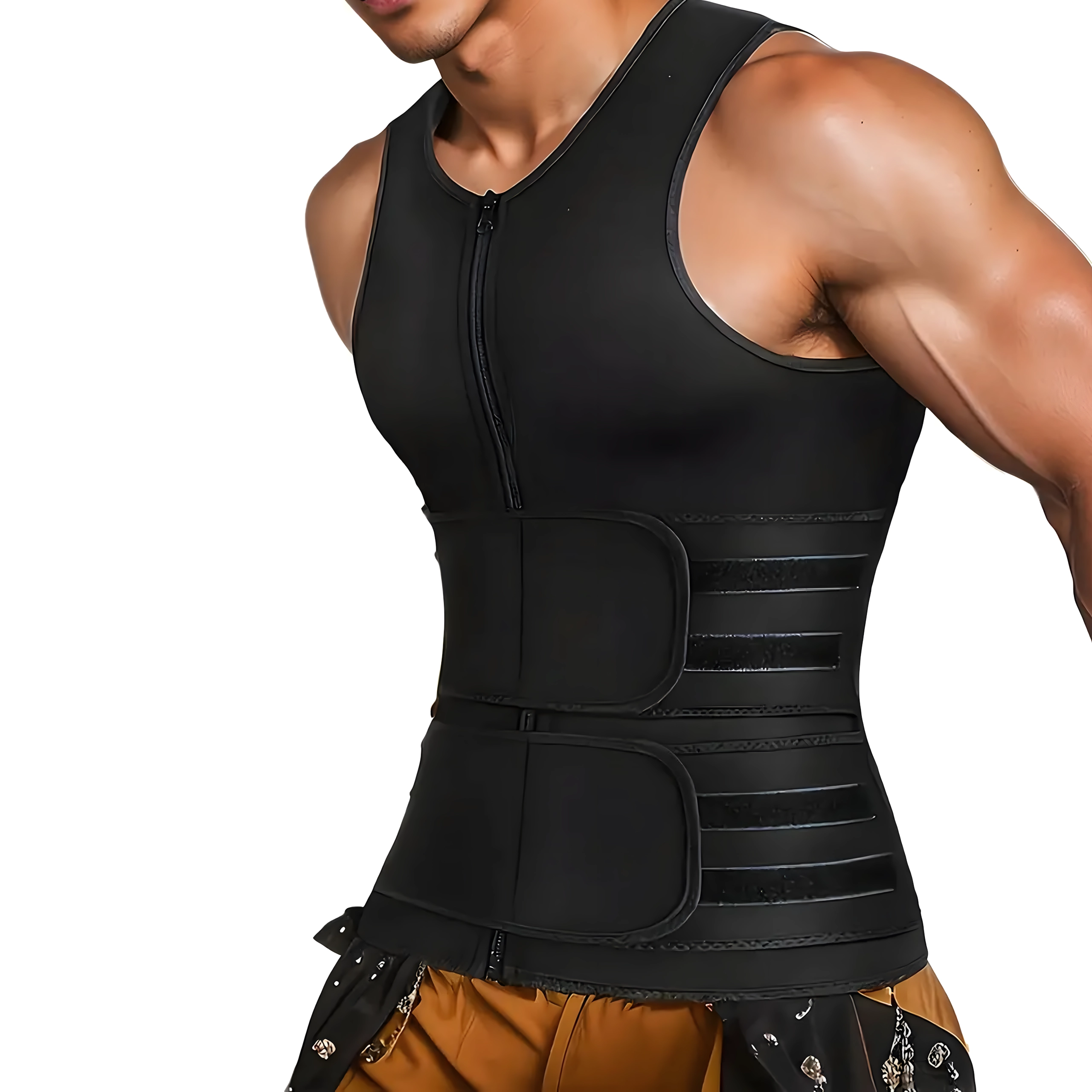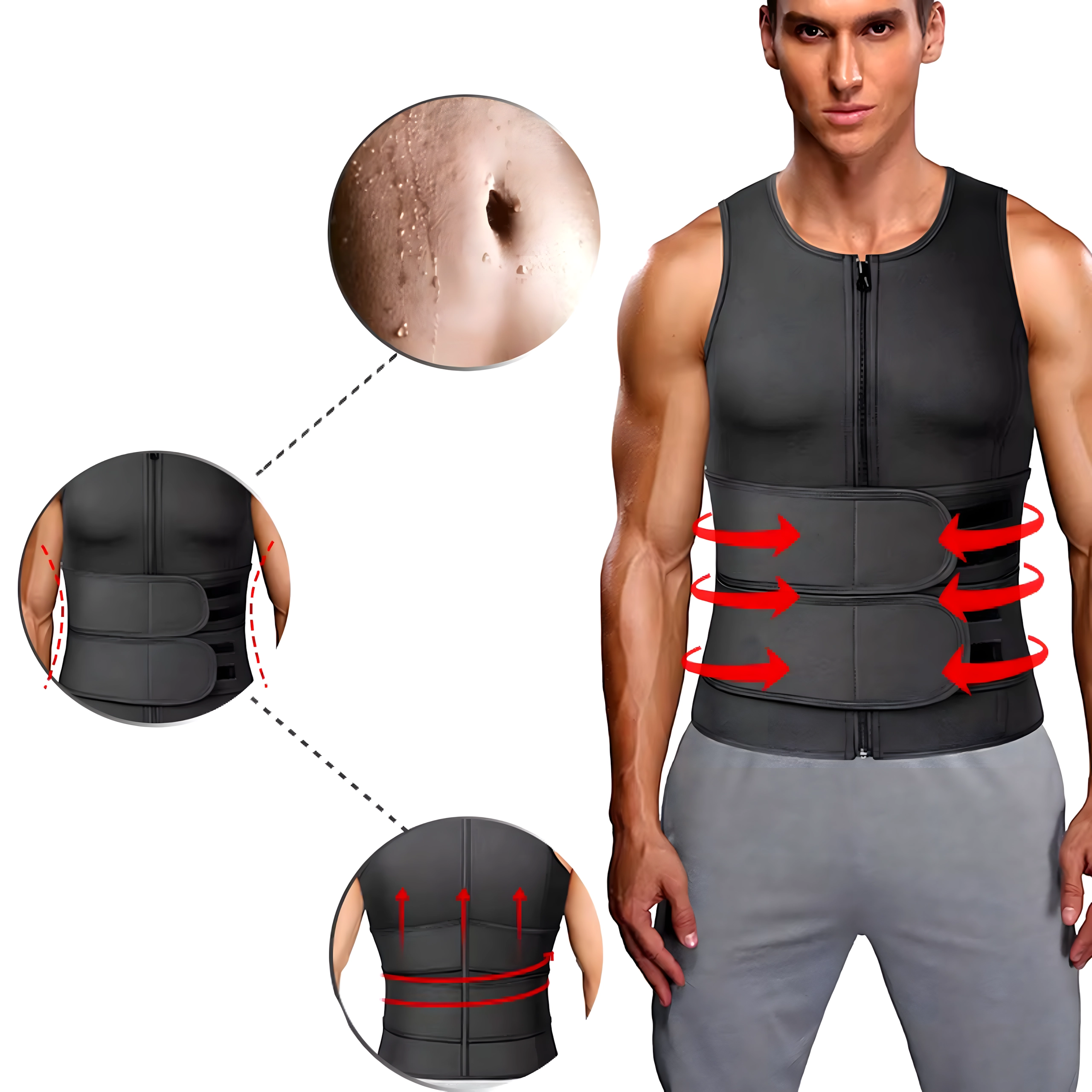 Αυτό το ανδρικό γιλέκο συμπίεσης σάουνας από ποιοτικό νεοπρένιο αυξάνει τη θερμοκρασία στην περιοχή του κορμού, ενισχύοντας την εφίδρωση και την πιο αποτελεσματική καύση θερμίδων. Παράλληλα σταθεροποιεί το κέντρο του σώματος, βελτιώνει τη στάση και μειώνει την κόπωση της πλάτης σε προπόνηση δύναμης, τρέξιμο και καρδιο. Το μπροστινό φερμουάρ και οι φαρδιές ρυθμιζόμενες ταινίες επιτρέπουν γρήγορη εφαρμογή και ακριβές σφίξιμο σύμφωνα με τις ανάγκες.