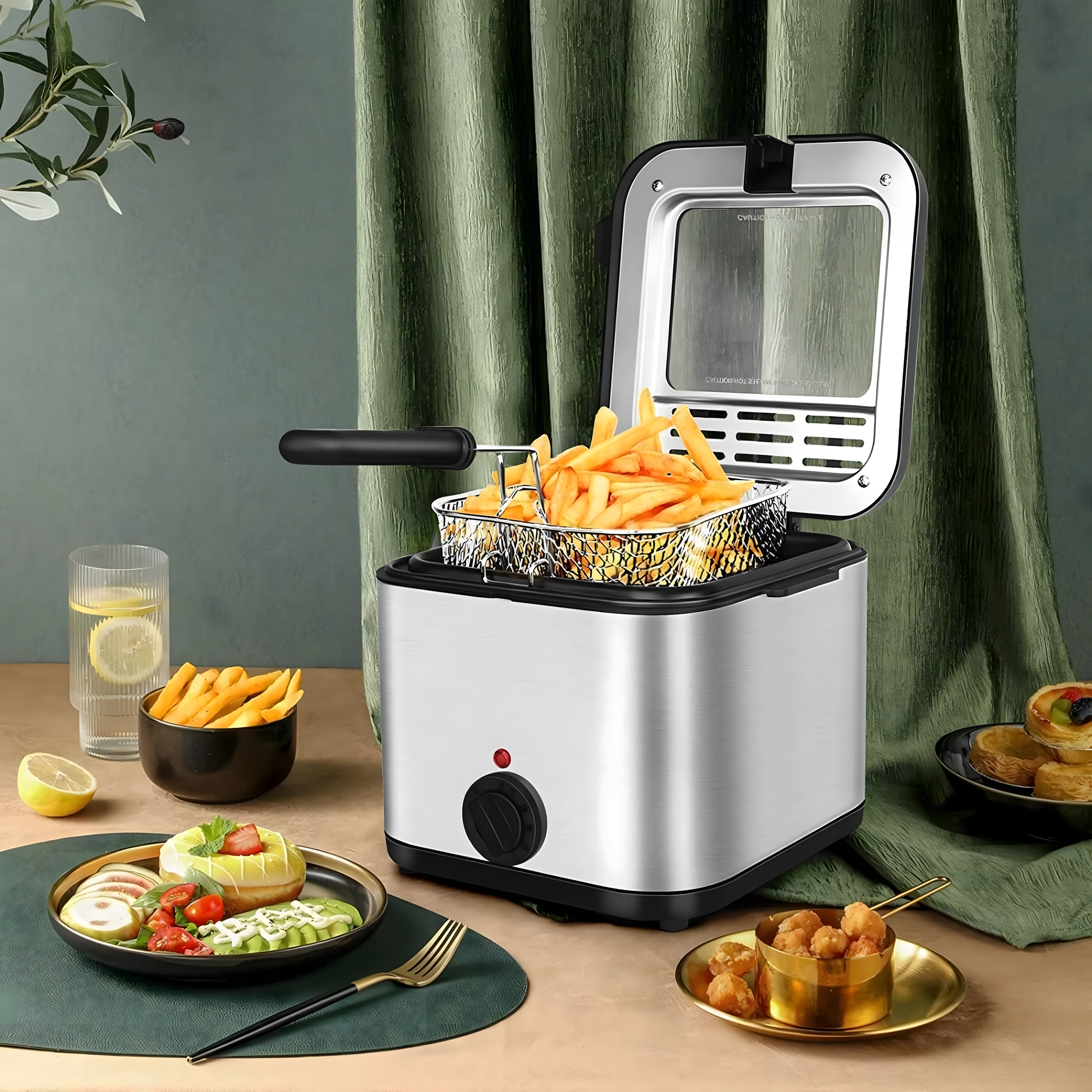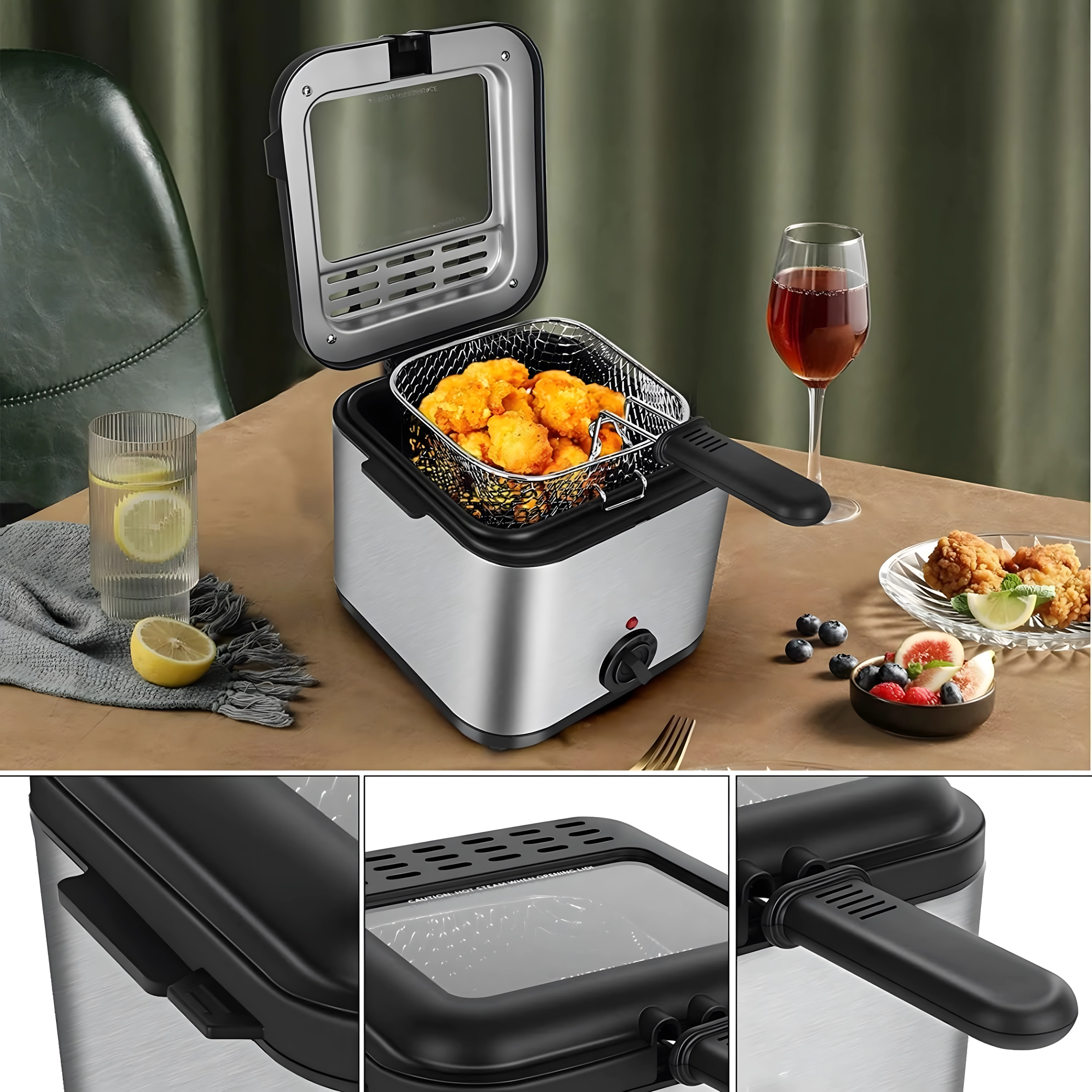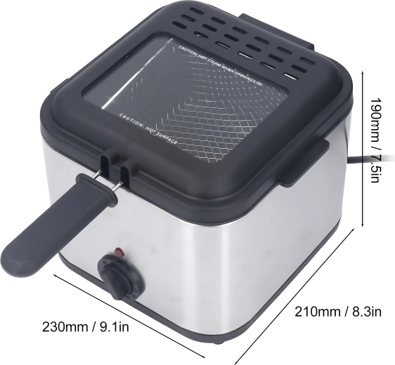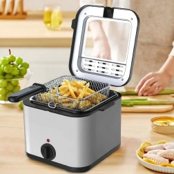 Το πρακτικό παραθυράκι στο καπάκι σάς επιτρέπει να παρακολουθείτε τη διαδικασία χωρίς άσκοπο άνοιγμα, κάτι που βοηθά στη διατήρηση σταθερής θερμοκρασίας λαδιού. Η ισχύς 1000 W εξασφαλίζει αποδοτική θέρμανση και ομοιόμορφα αποτελέσματα. Το αφαιρούμενο καλάθι με λαβή διευκολύνει τον χειρισμό και το ασφαλές στράγγισμα του λαδιού.