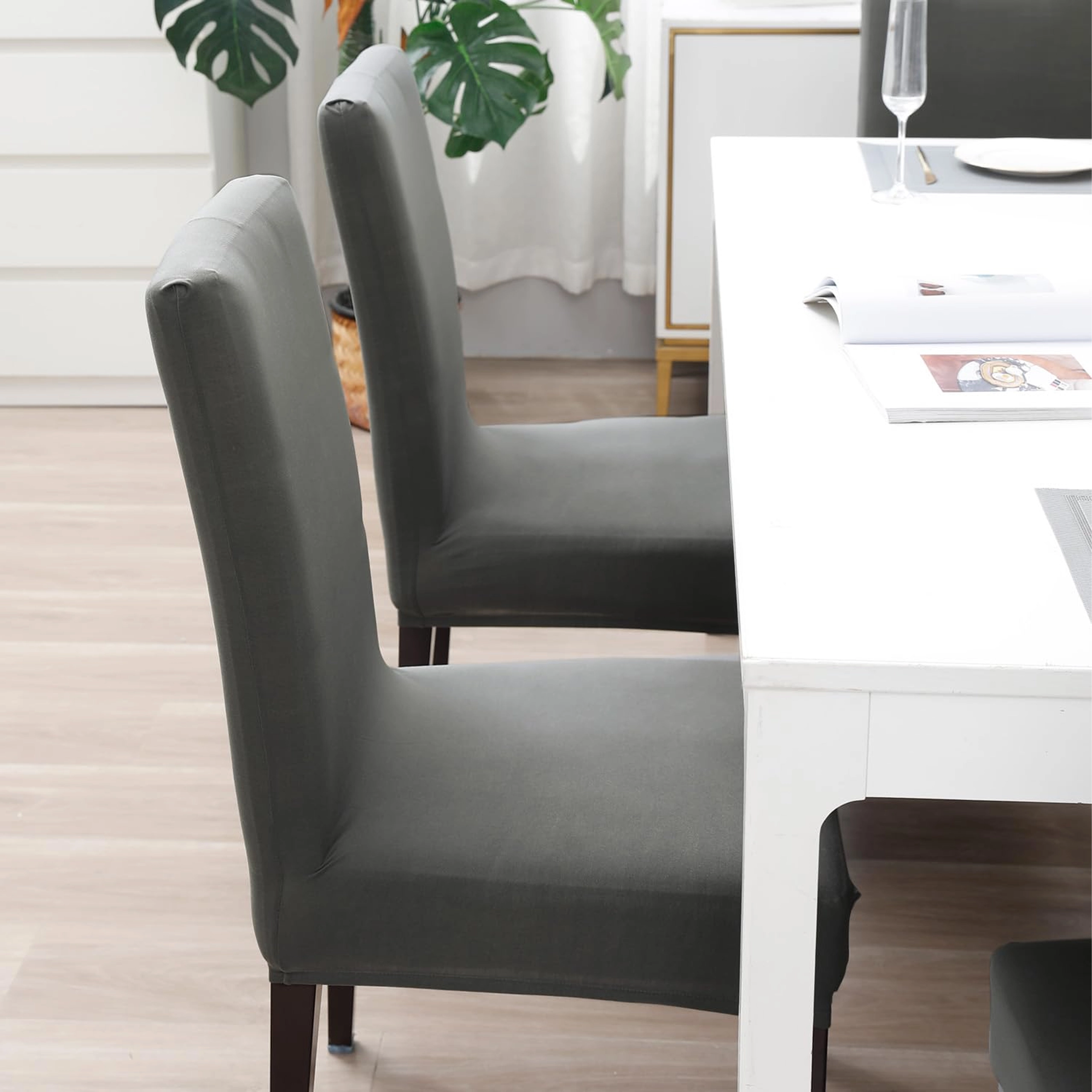 Πρακτικά και κομψά καλύμματα καθισμάτων που ανανεώνουν αμέσως την όψη παλαιότερων καρεκλών και παρατείνουν τη διάρκεια ζωής τους. Το ελαστικό υλικό (90% πολυεστέρας, 10% ελαστάνη) εξασφαλίζει στενή εφαρμογή χωρίς τσακίσεις και χωρίς ανάγκη σιδερώματος. Σε ουδέτερο γκρι χρώμα που ταιριάζει εύκολα με τους περισσότερους εσωτερικούς χώρους – από την τραπεζαρία έως το γραφείο.