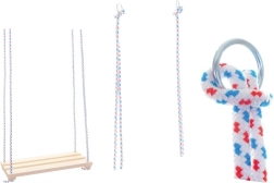 Κλασική ξύλινη κούνια σε φυσικό χρώμα για το σπίτι και τον κήπο. Προσφέρει σταθερό και ασφαλές λίκνισμα, ανθεκτικό ξύλινο κάθισμα 46 × 19 cm, αντοχή 80 kg και ανθεκτικά σχοινιά μήκους 1,7 m. Κατάλληλη για παιδιά από 3 ετών.