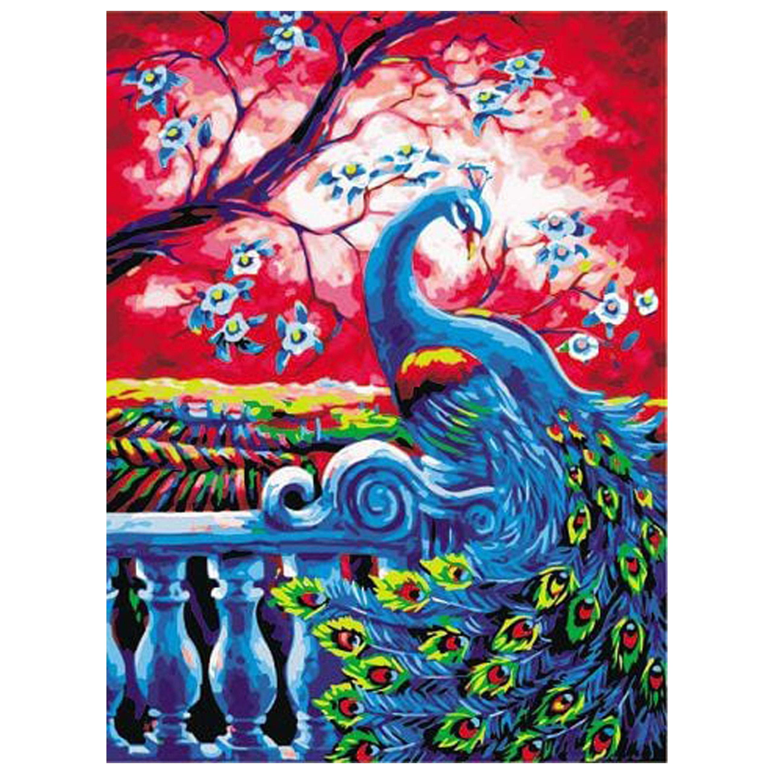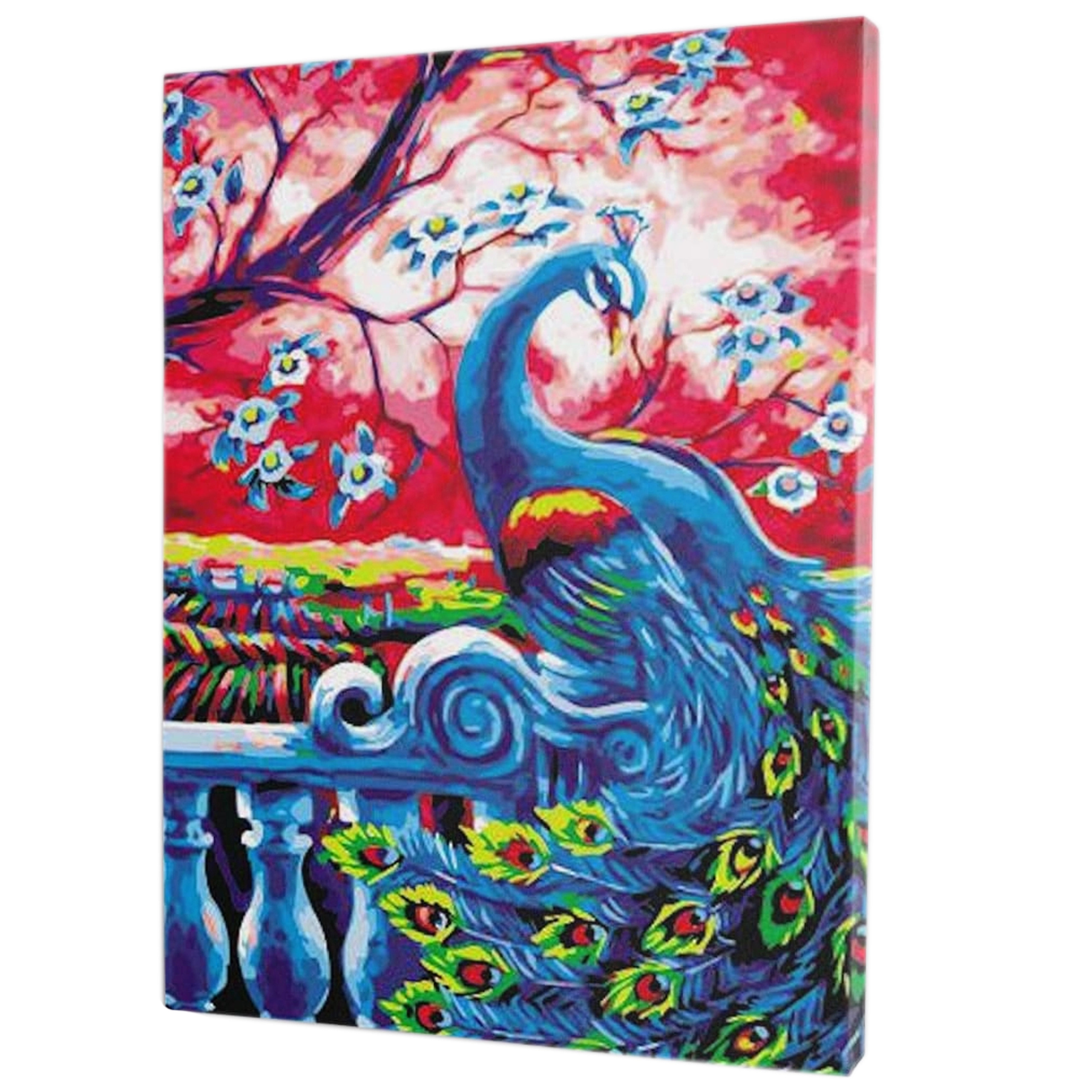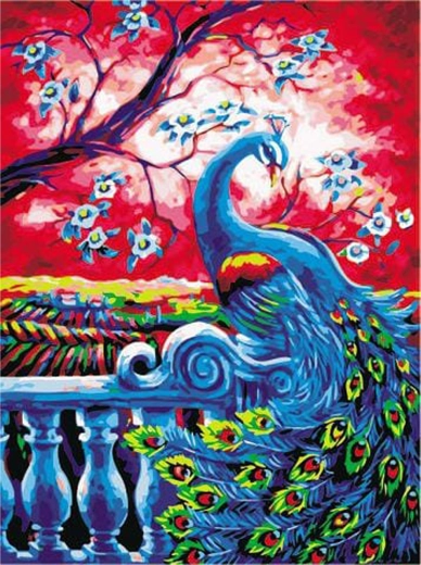 Πλήρες σετ με καμβά σε πλαίσιο, χρώματα και πινέλα. Μετά την ολοκλήρωση, μπορείτε να κρεμάσετε απευθείας το έργο με το μοτίβο του παγονιού.
