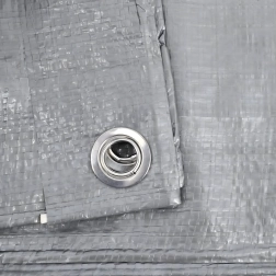 Το ασημί προστατευτικό κάλυμμα 4 × 5 m με βάρος 80 g/m² είναι εξαιρετική επιλογή για ολοχρονή προστασία υλικών και εξοπλισμού. Προστατεύει από βροχή, χιόνι, UV ακτινοβολία και ρύπους και, χάρη στις οπές περιμετρικά, στερεώνεται με ασφάλεια σε σκελετούς, πασσάλους ή σχοινί.