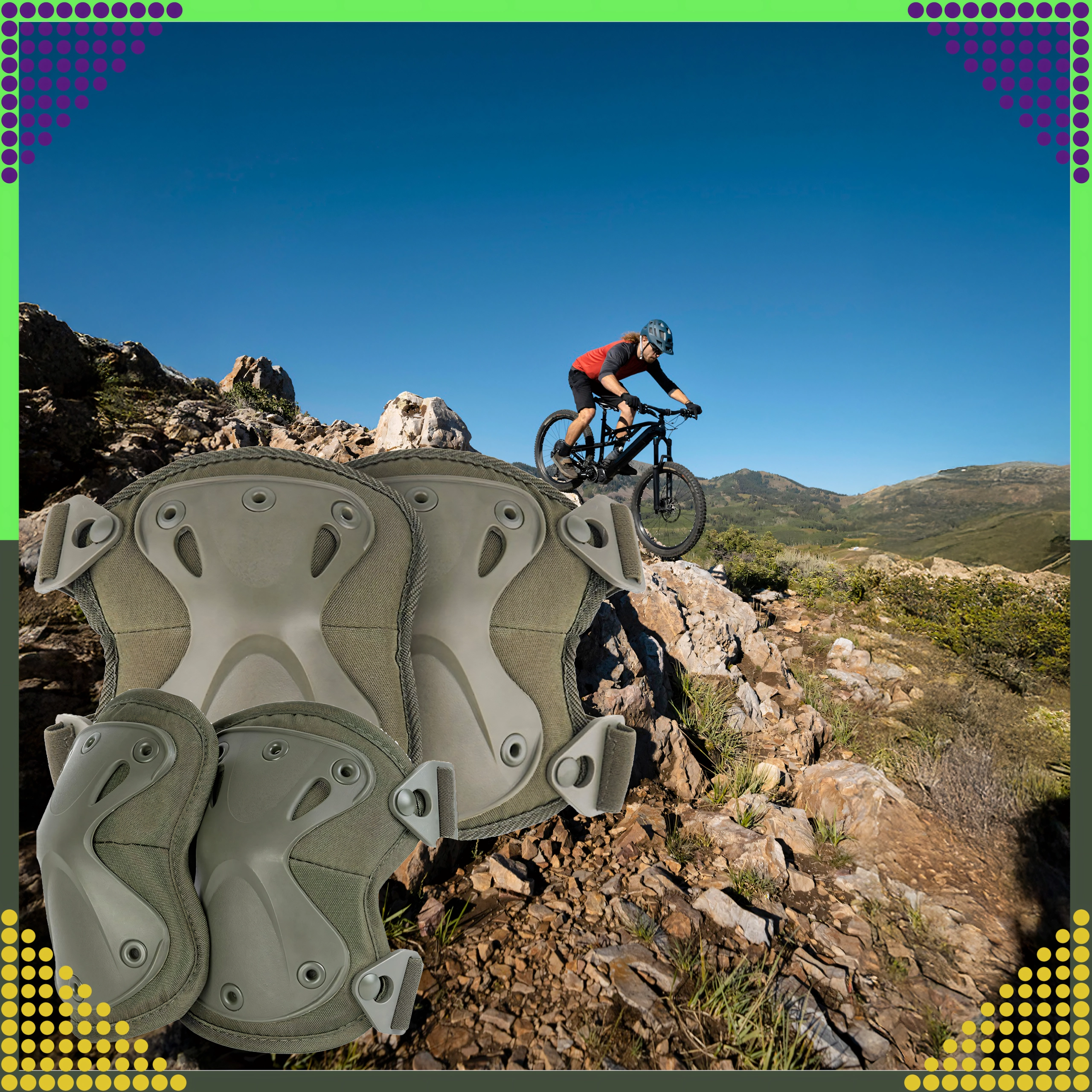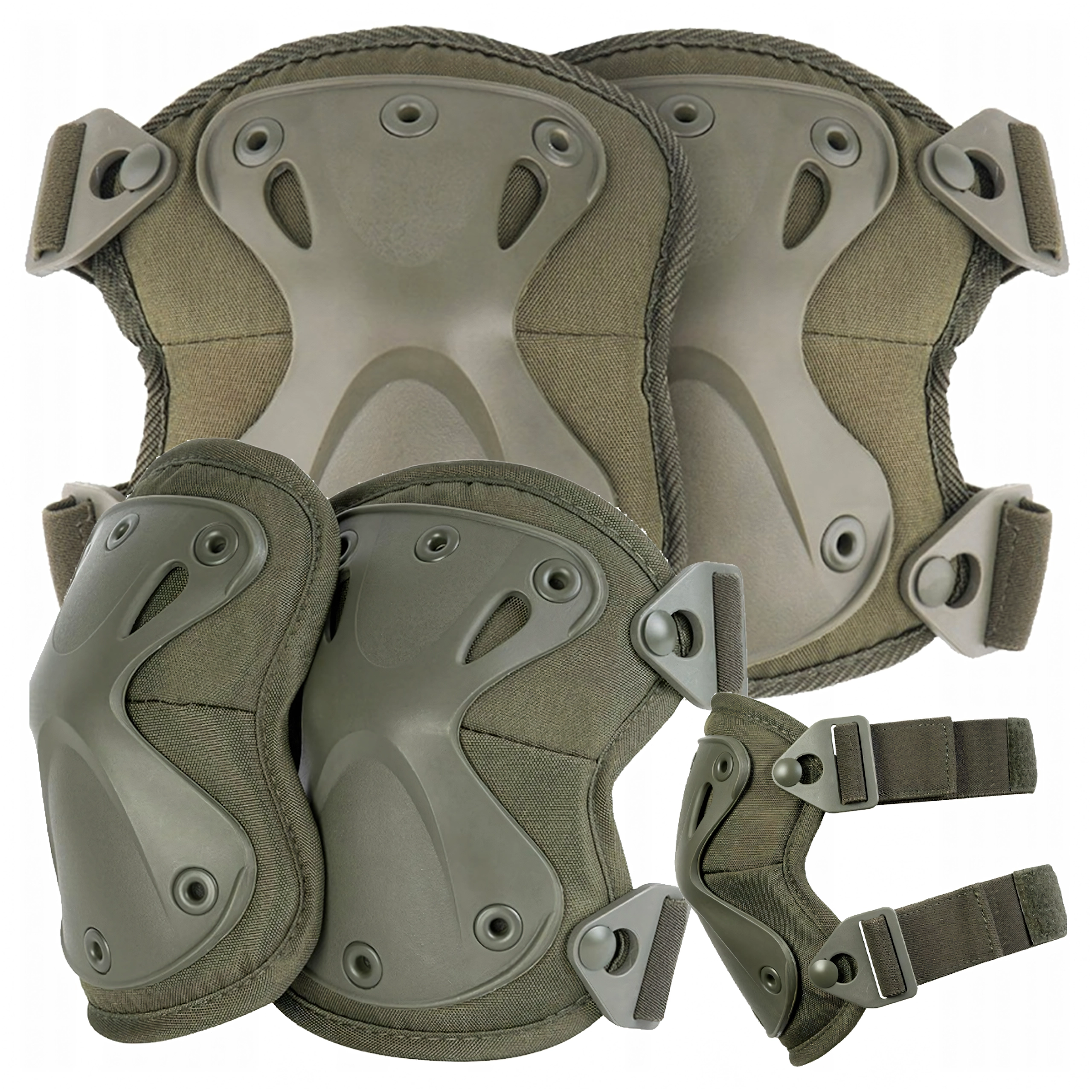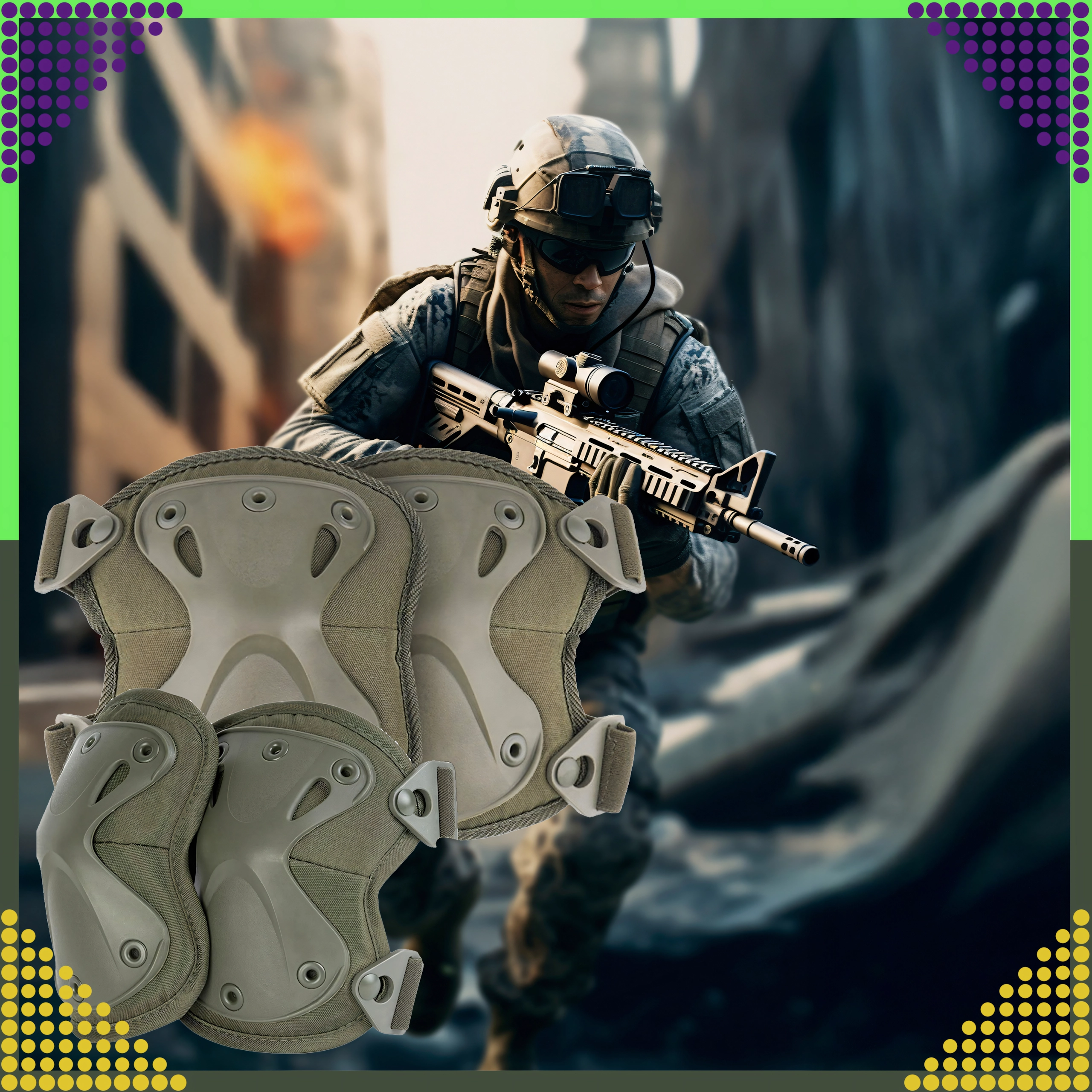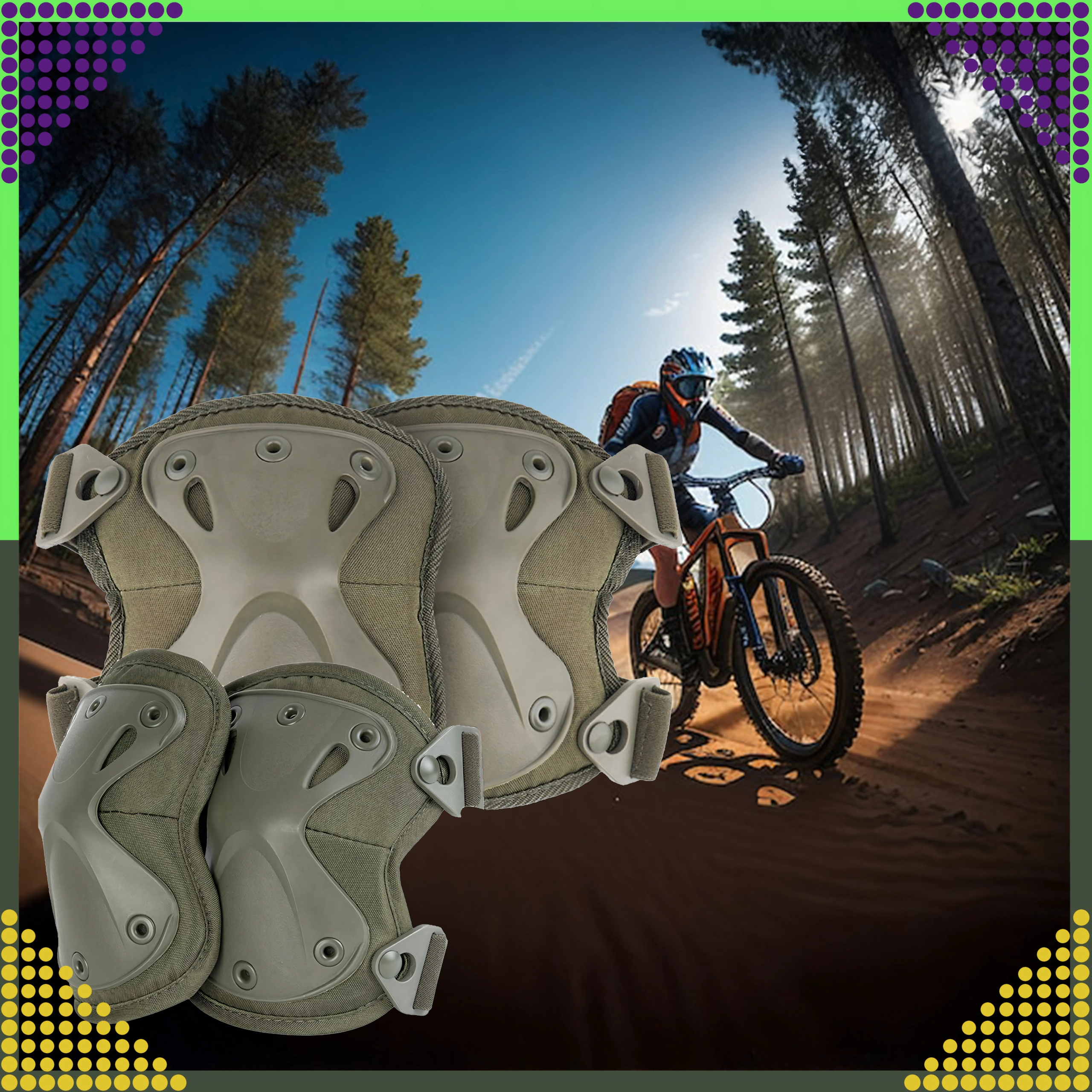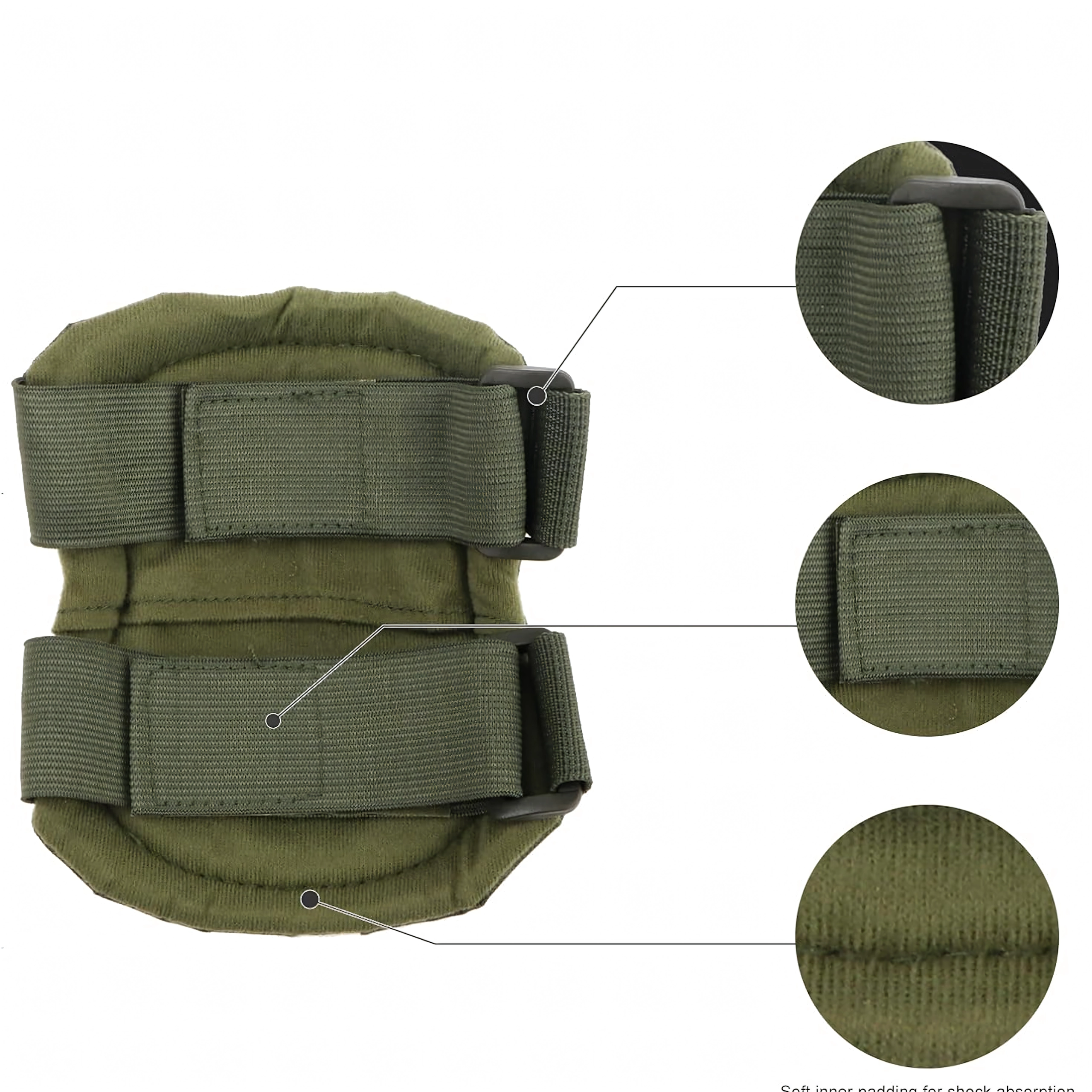 Τα προστατευτικά στερεώνονται με ελαστικούς ιμάντες που επιτρέπουν ακριβές σφίξιμο. Η καρφωτή σύνδεση ενισχύει την αντοχή στο ξερίζωμα, ενώ οι πόρπες ταχείας απελευθέρωσης επιτρέπουν αστραπιαία εφαρμογή και αφαίρεση χωρίς επαναρύθμιση του μήκους των ιμάντων. Κατάλληλα για airsoft, paintball, ποδηλασία, skate/πατίνι/inline, outdoor και ελαφριές εργασιακές δραστηριότητες.