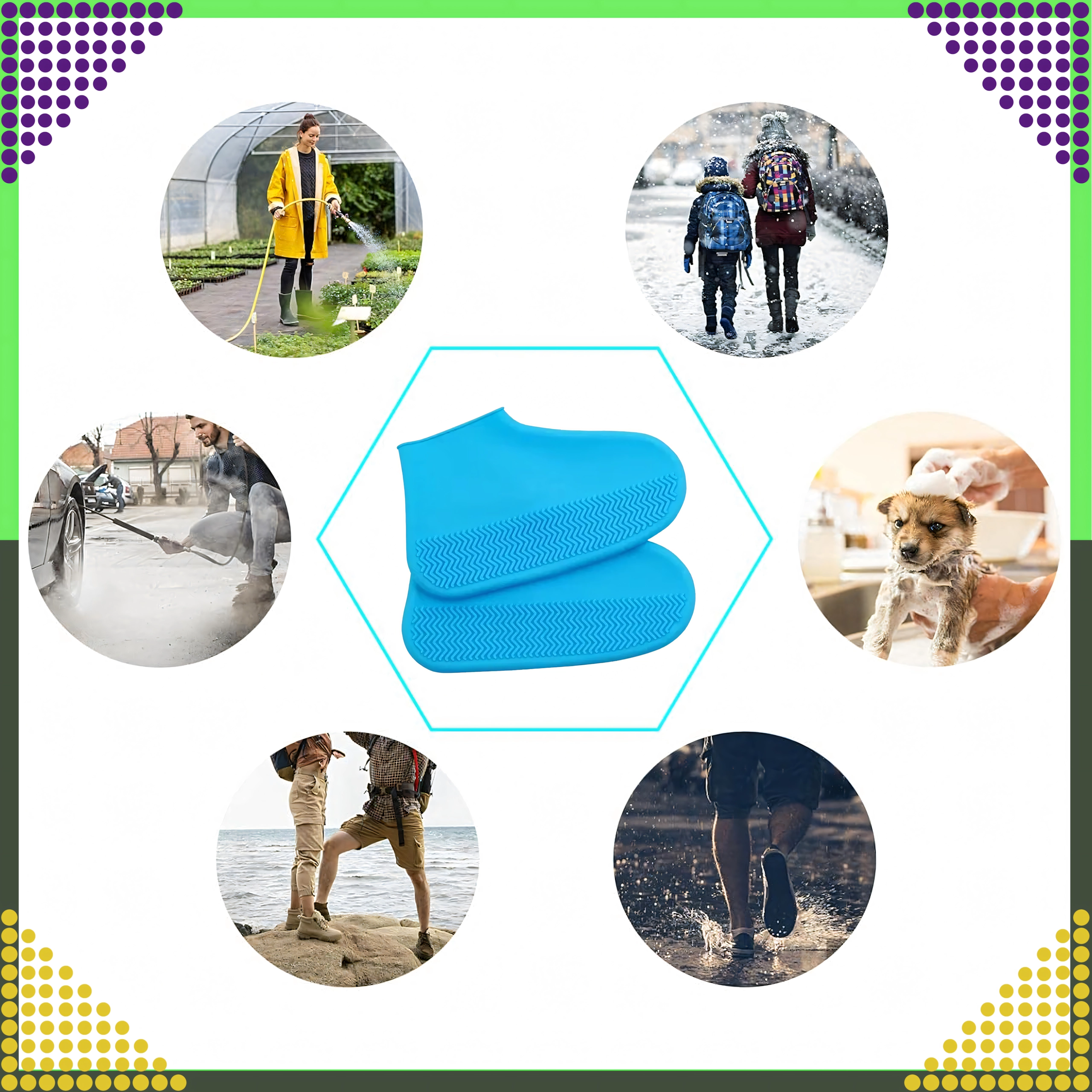 Κρατήστε τα παπούτσια σας προστατευμένα από νερό, λάσπη και βρωμιά. Τα σιλικονένια καλύμματα σε μέγεθος M (35–39) από ποιοτικό, ελαστικό και αδιάβροχο υλικό προστατεύουν την υπόδηση στη βροχή και στο περπάτημα μέσα από λακκούβες. Η αντιολισθητική υφή της σόλας εξασφαλίζει σταθερό βήμα σε βρεγμένες επιφάνειες, ενώ τα καλύμματα είναι ελαφριά, συμπαγή και εύκολα στον καθαρισμό.