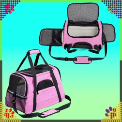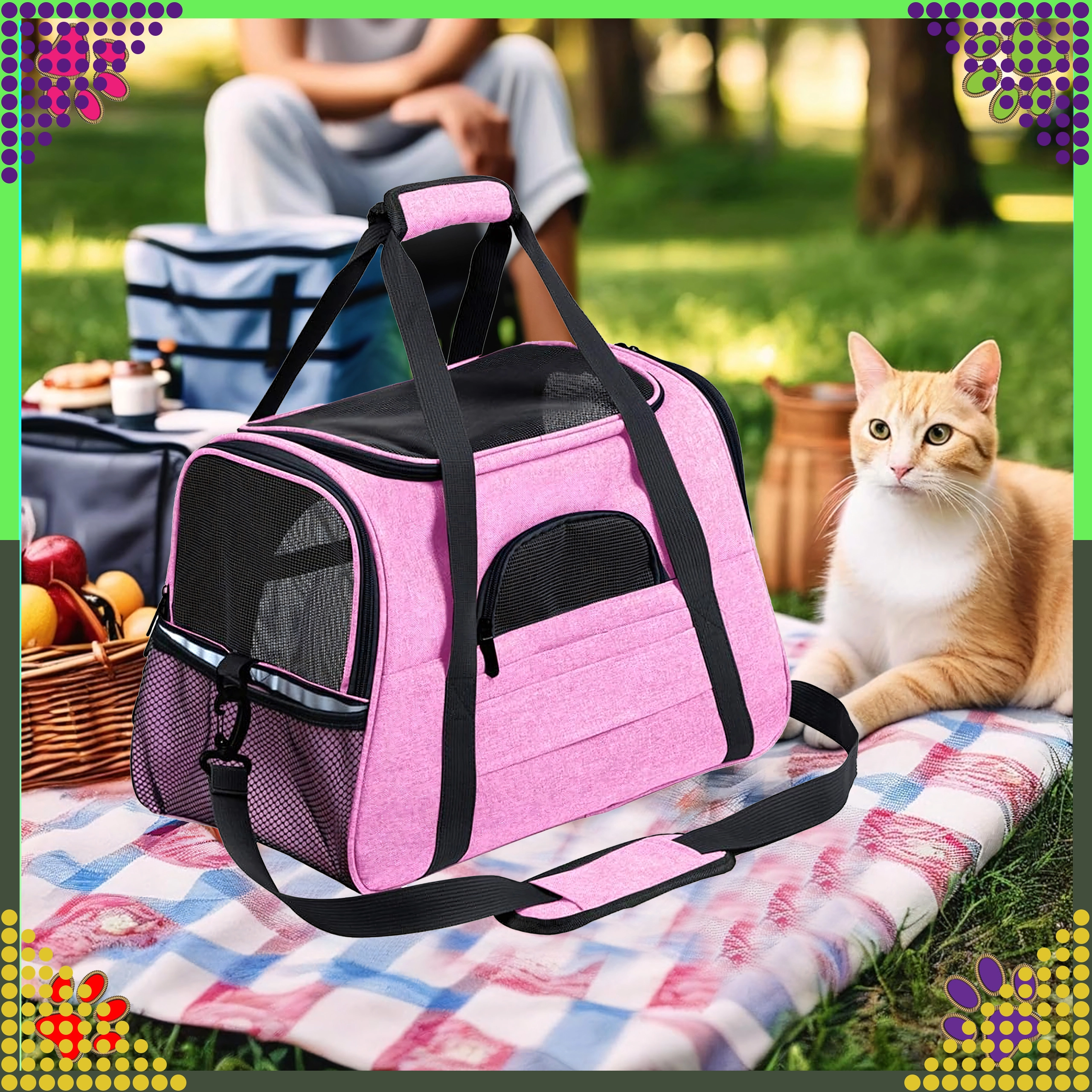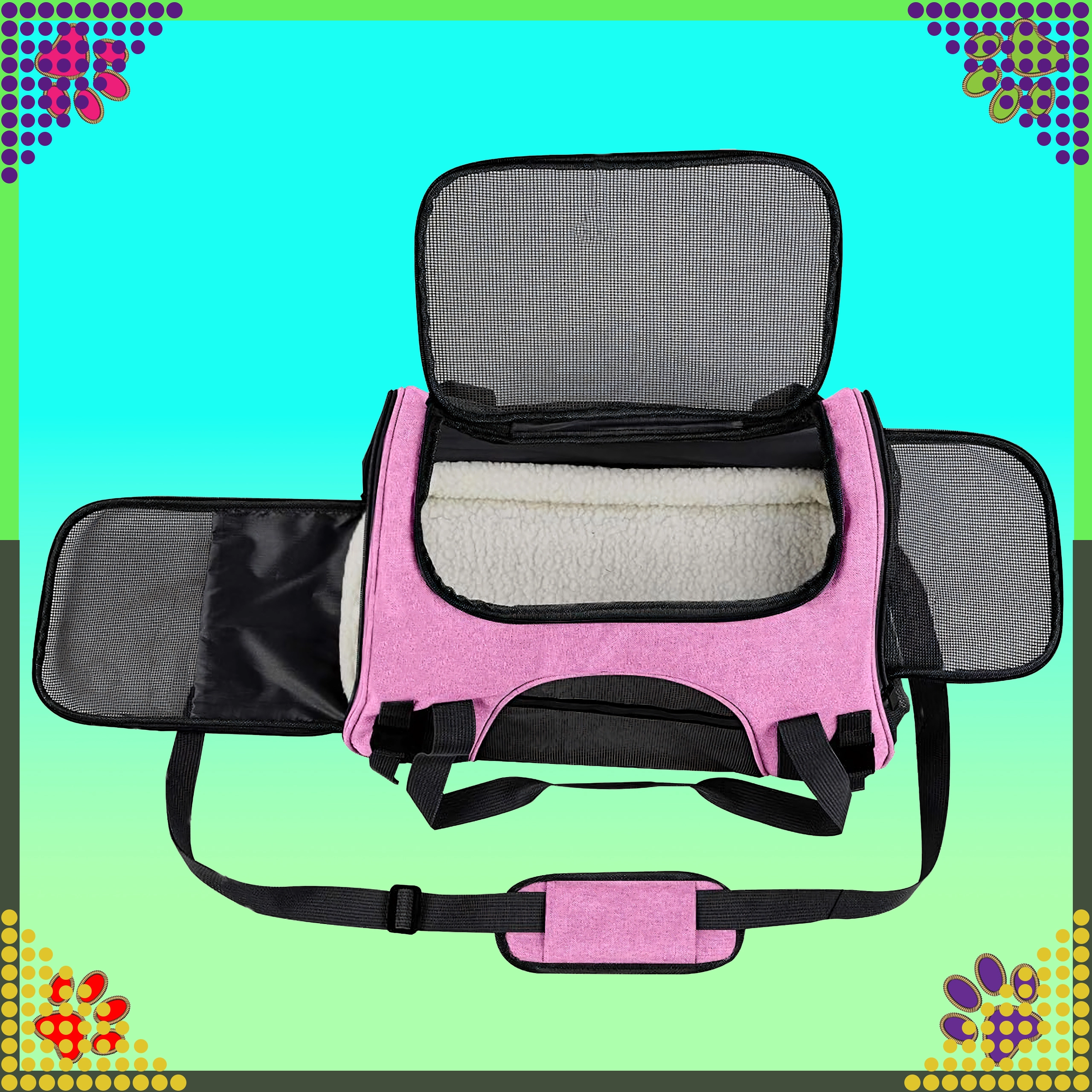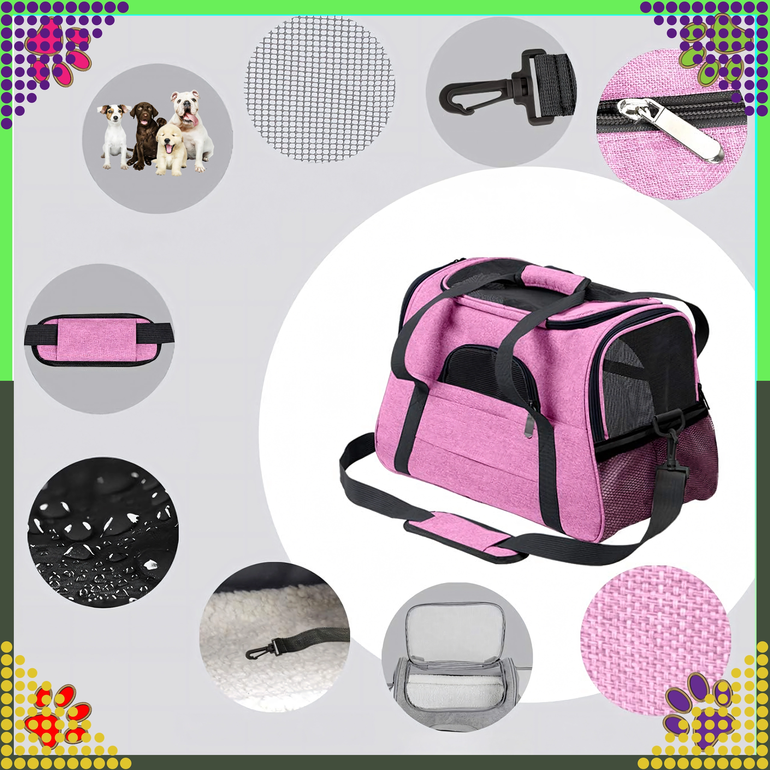 Η πρακτική φορητή τσάντα για ζώα συνδυάζει άνεση, ασφάλεια και εύκολη συντήρηση. Χάρη στον ποιοτικό πολυεστέρα είναι ανθεκτική σε λεκέδες και φθορές, δεν απορροφά δυσάρεστες οσμές και διατηρεί την εμφάνισή της ακόμη και με συχνή χρήση. Η ροζ απόχρωση θα ενθουσιάσει τους λάτρεις του στυλ και θα προσφέρει στο ζώο ένα ήρεμο περιβάλλον κατά τη μετακίνηση.