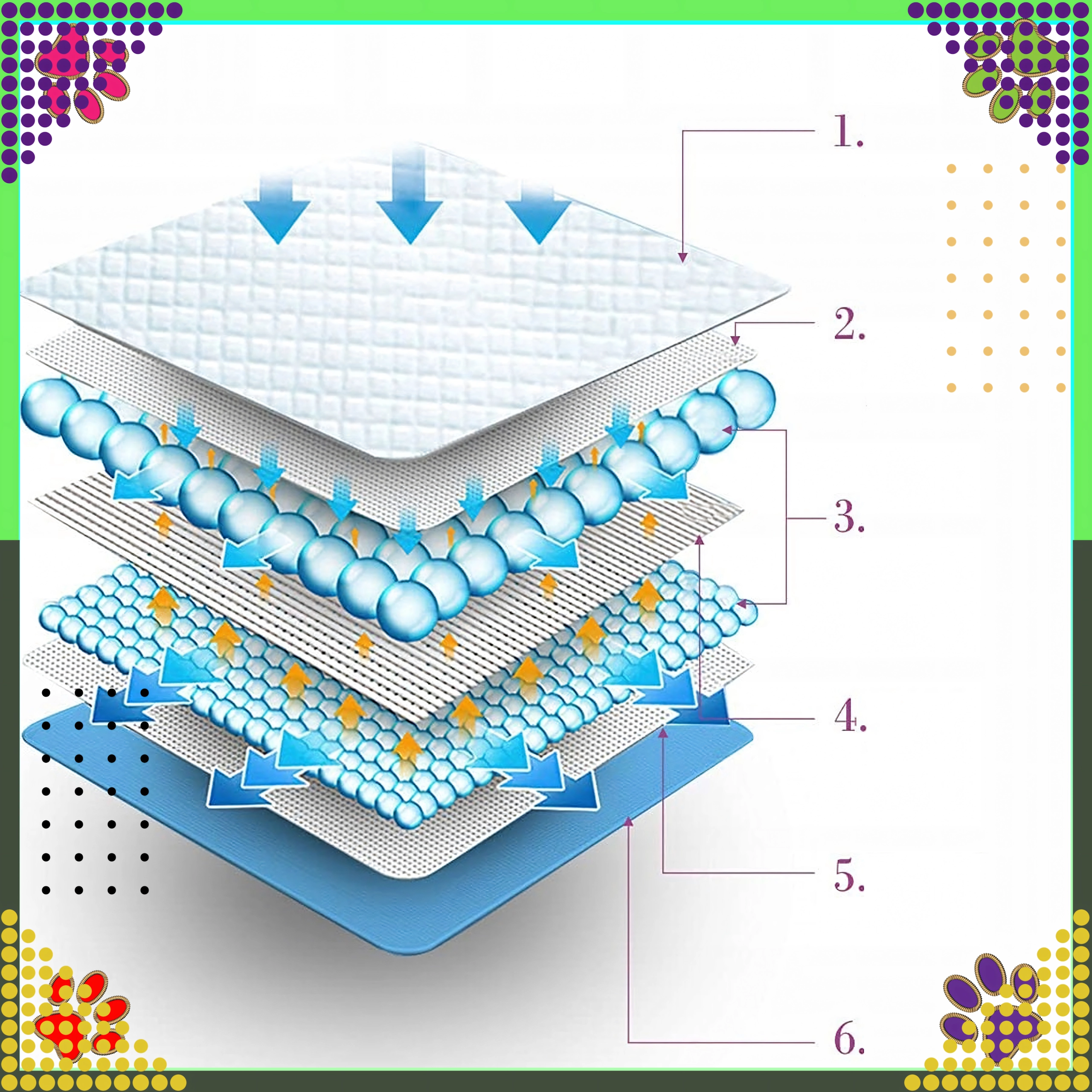 Τα υποστρώματα με πολυστρωματικό πυρήνα κατανέμουν αποτελεσματικά το υγρό και το απορροφούν άμεσα. Η κάτω αδιάβροχη μεμβράνη αποτρέπει αξιόπιστα τη διαρροή, ενώ η απαλή επιφάνεια είναι φιλική προς τις πατούσες. Τα υποστρώματα δεν διαχωρίζονται, είναι άνετα και μετά τη χρήση απλώς τα απορρίπτετε.