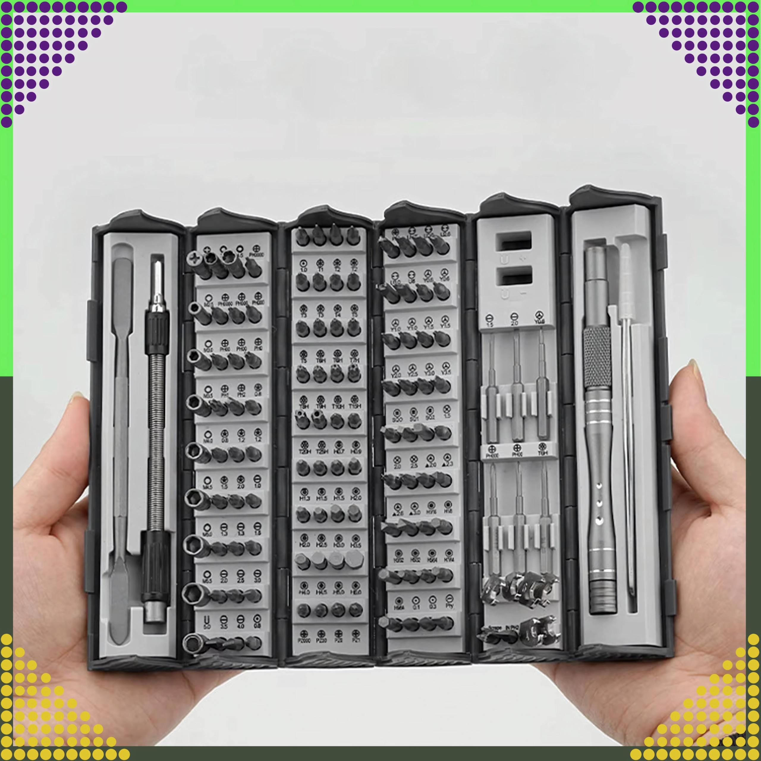 Αυτό το πολυχρηστικό σετ εργαλείων 128 σε 1 είναι εξαιρετική επιλογή για επαγγελματικά συνεργεία και οικιακά εργαστήρια. Τα μαγνητικά μπιτ συγκρατούν σταθερά τις βίδες, επιταχύνουν την εργασία και μειώνουν τον κίνδυνο απώλειάς τους. Ο ποιοτικός χάλυβας εξασφαλίζει αντοχή στη φθορά και στη διάβρωση, ενώ οι αντιολισθητικές λαβές προσφέρουν άνεση στη μακροχρόνια χρήση.