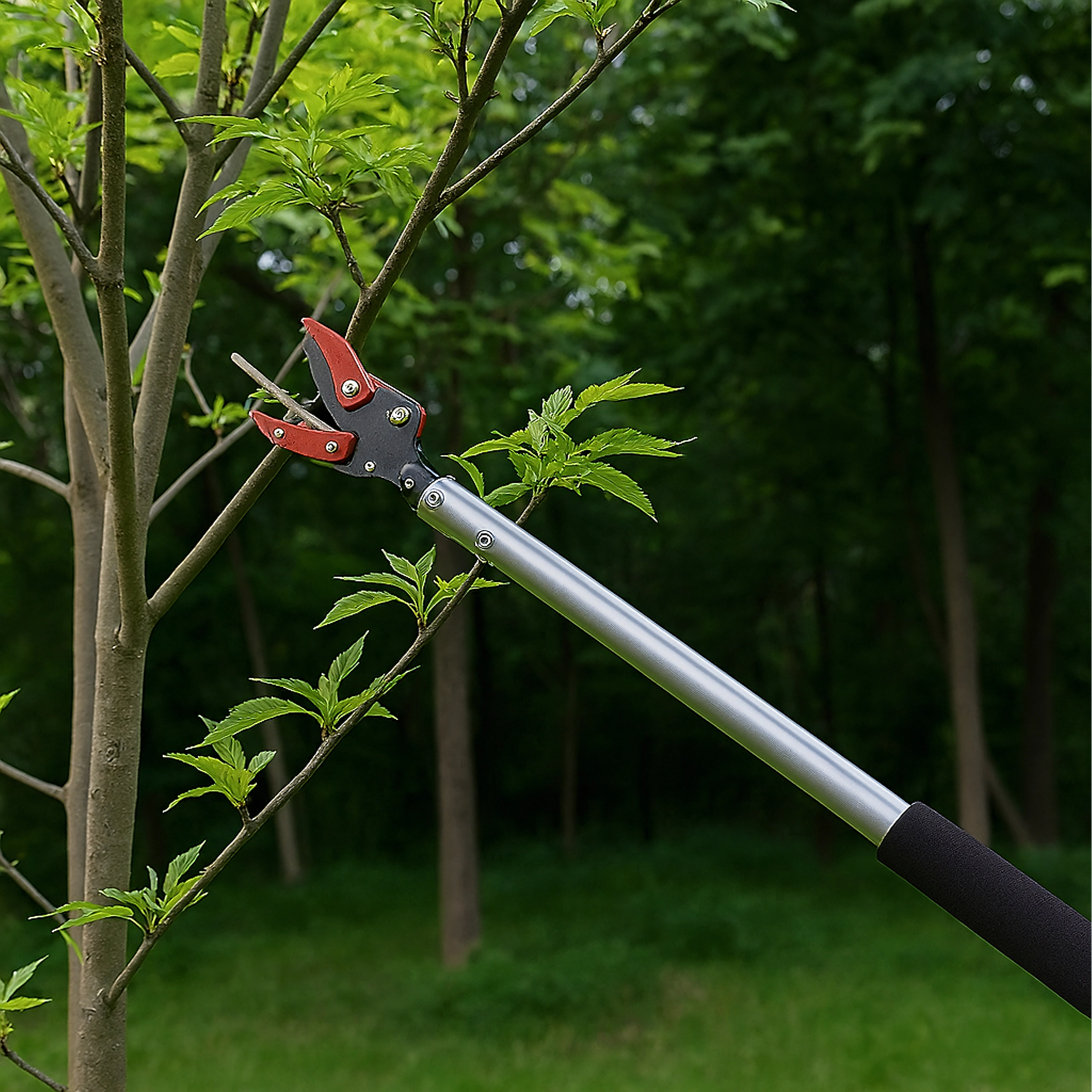 Αυτό το μακρύ ψαλίδι κλαδέματος έχει σχεδιαστεί για άνετο κλάδεμα κλαδιών, διαμόρφωση θάμνων και ασφαλή συγκομιδή φρούτων από μεγαλύτερα ύψη. Χάρη στο ελαφρύ αλουμινένιο σώμα το εργαλείο χειρίζεται εύκολα, ενώ η κοφτερή, ανθεκτική λεπίδα εξασφαλίζει καθαρή και ακριβή κοπή.