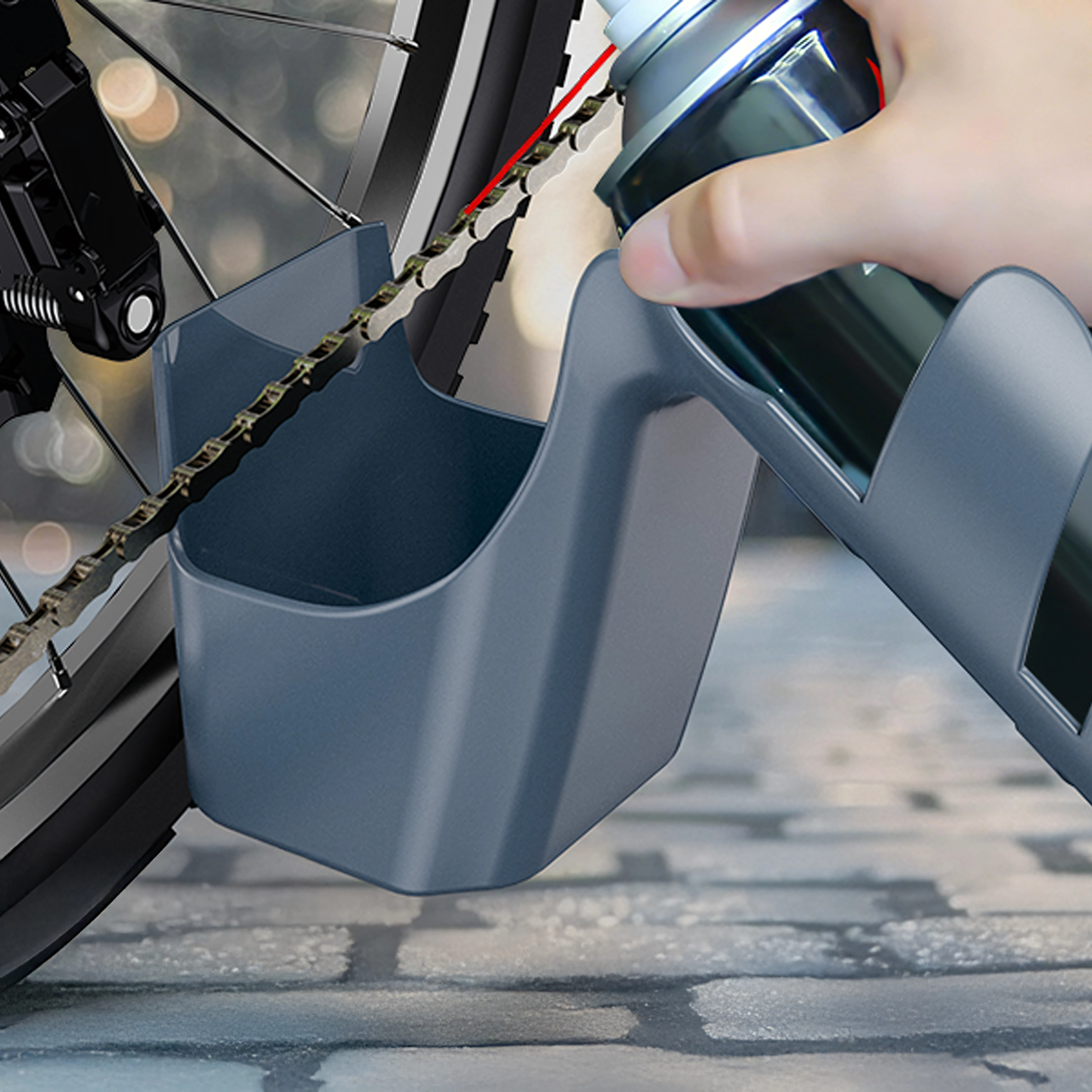 Το διαμορφωμένο κανάλι χωρά κάτω από την αλυσίδα και συλλέγει την περίσσεια λαδιού και το πιτσίλισμα, ώστε το ποδήλατο και το δάπεδο να μένουν καθαρά.