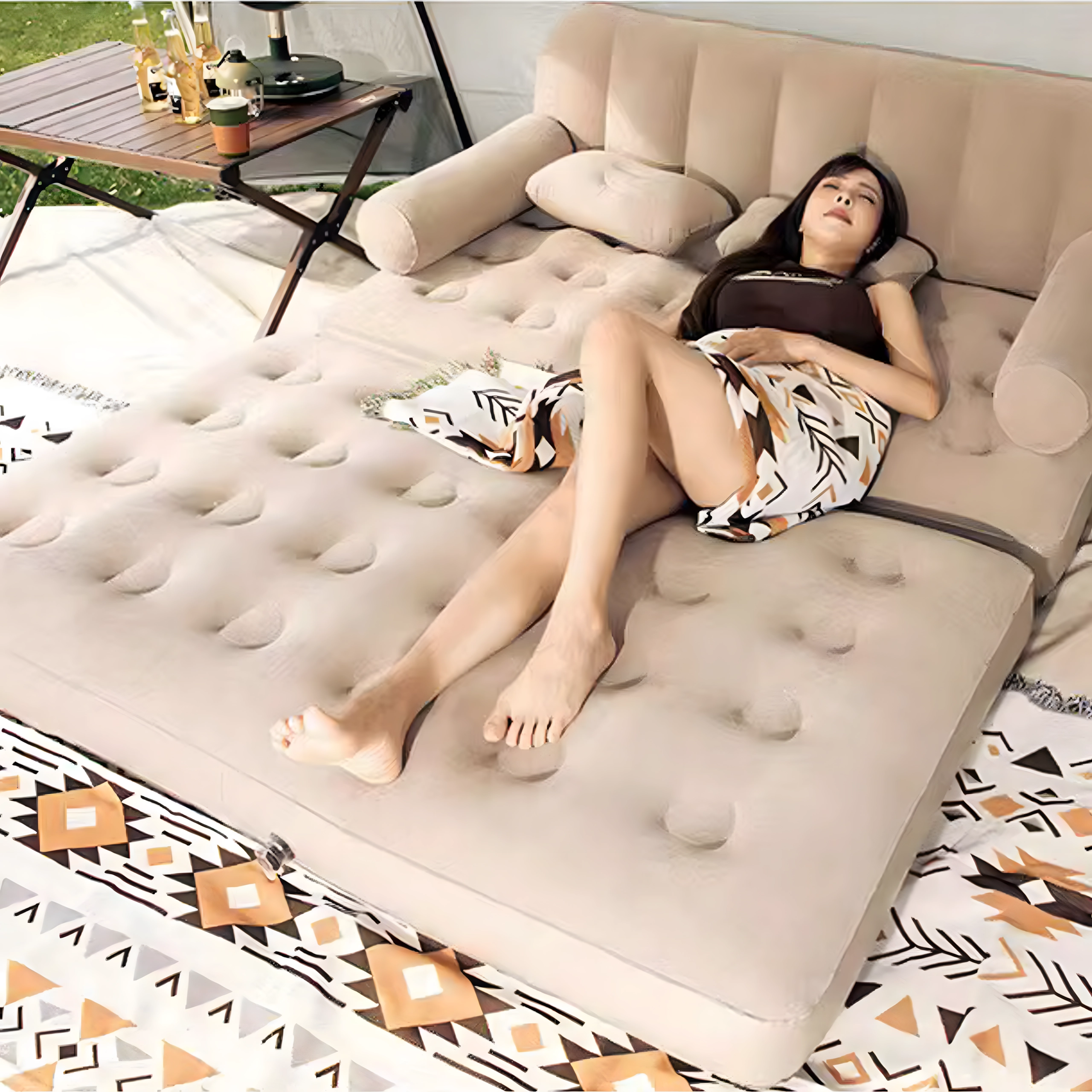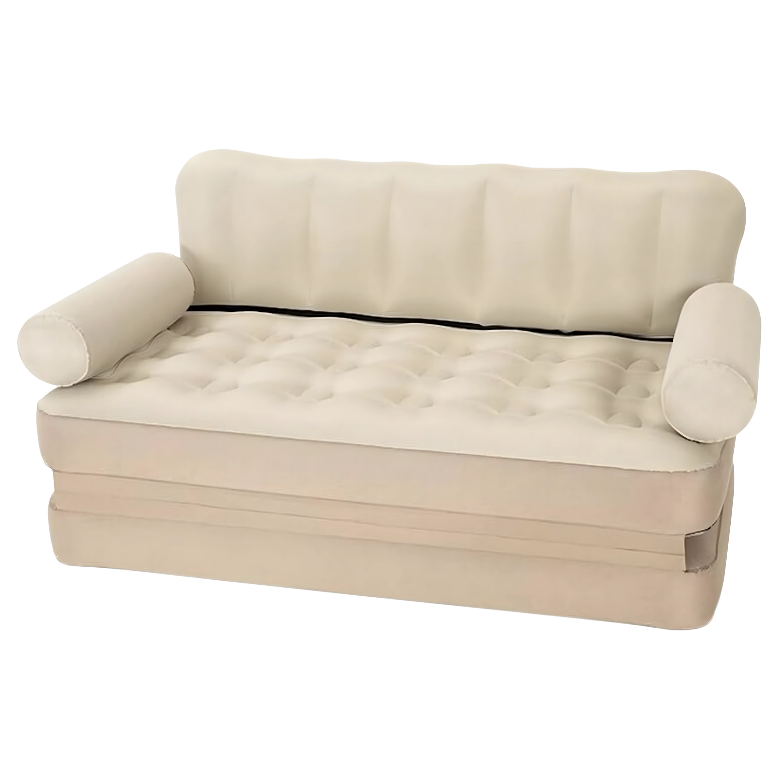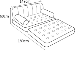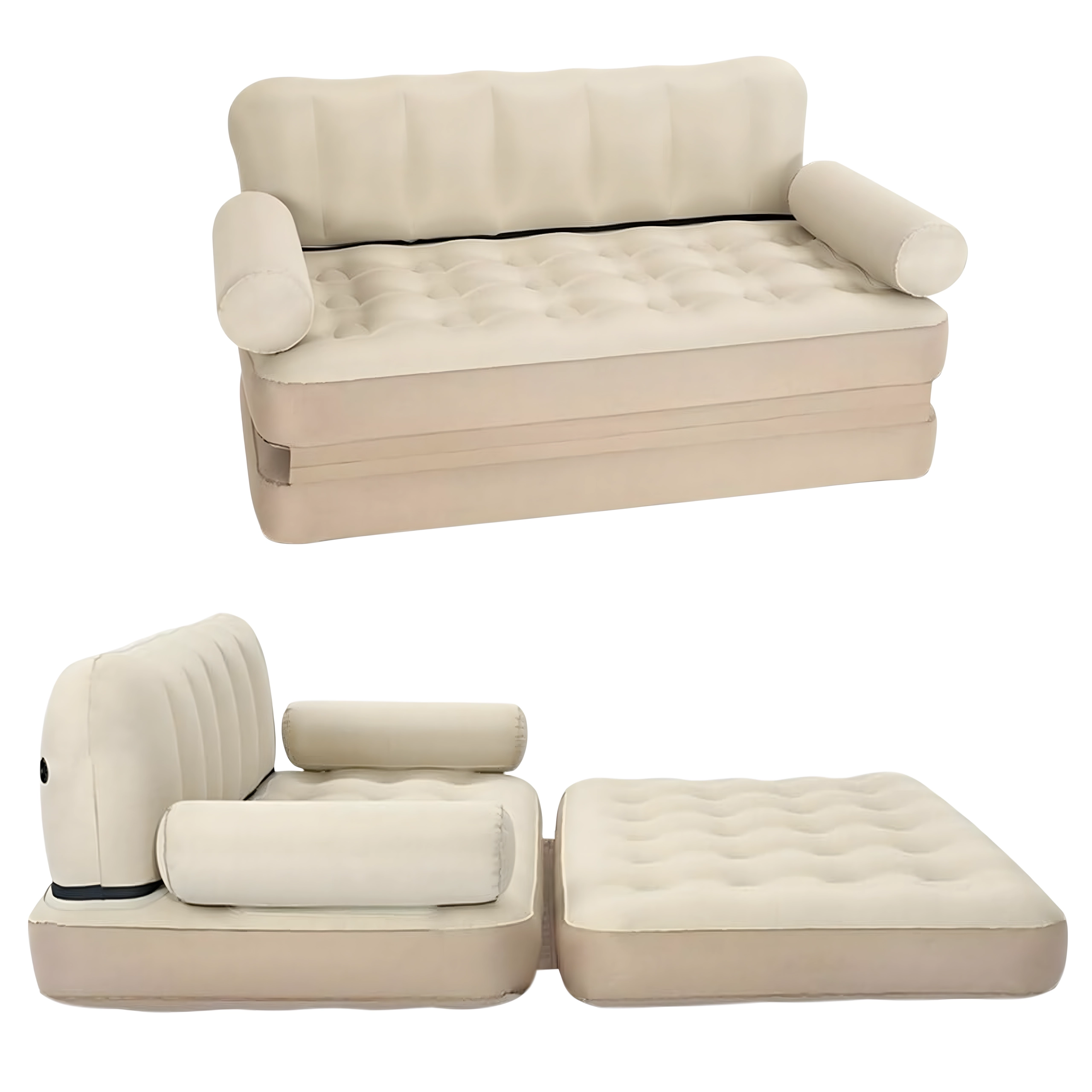 Ανακαλύψτε μια ευέλικτη λύση για καθιστικό και ύπνο σε ένα. Αυτός ο φουσκωτός ανακλινόμενος καναπές 5 σε 1 μετατρέπεται σε λίγες στιγμές από άνετο καναπέ σε ευρύχωρο κρεβάτι για δύο άτομα. Η απαλή, θαλαμωτή επιφάνεια μειώνει τα σημεία πίεσης και προσφέρει στήριξη τόσο στο κάθισμα όσο και στον ύπνο.