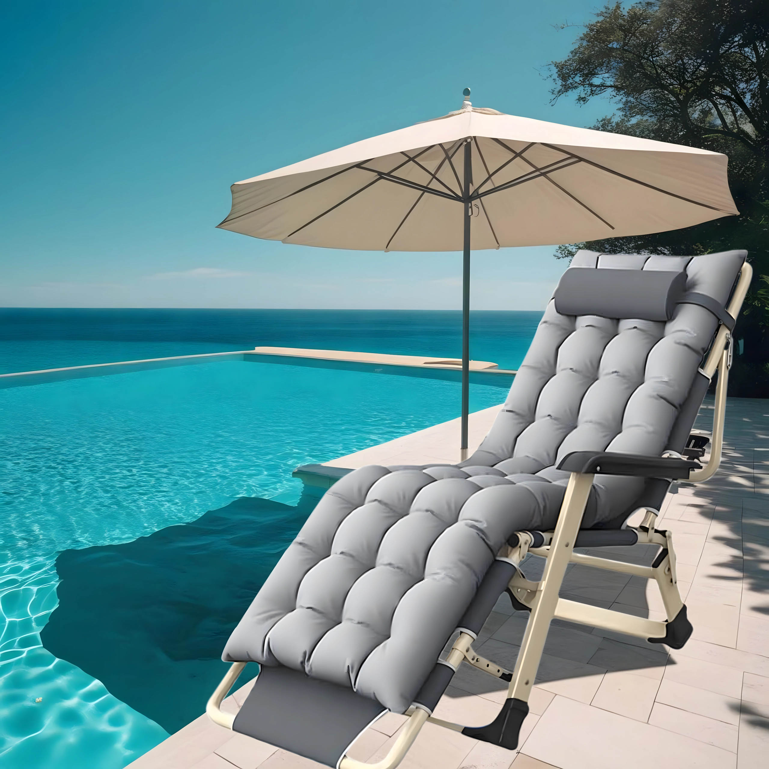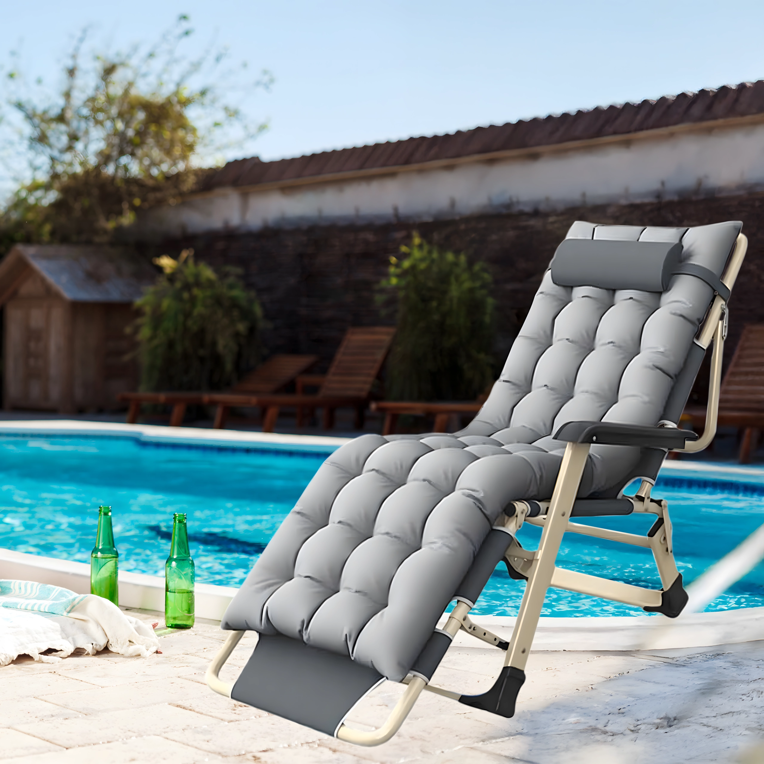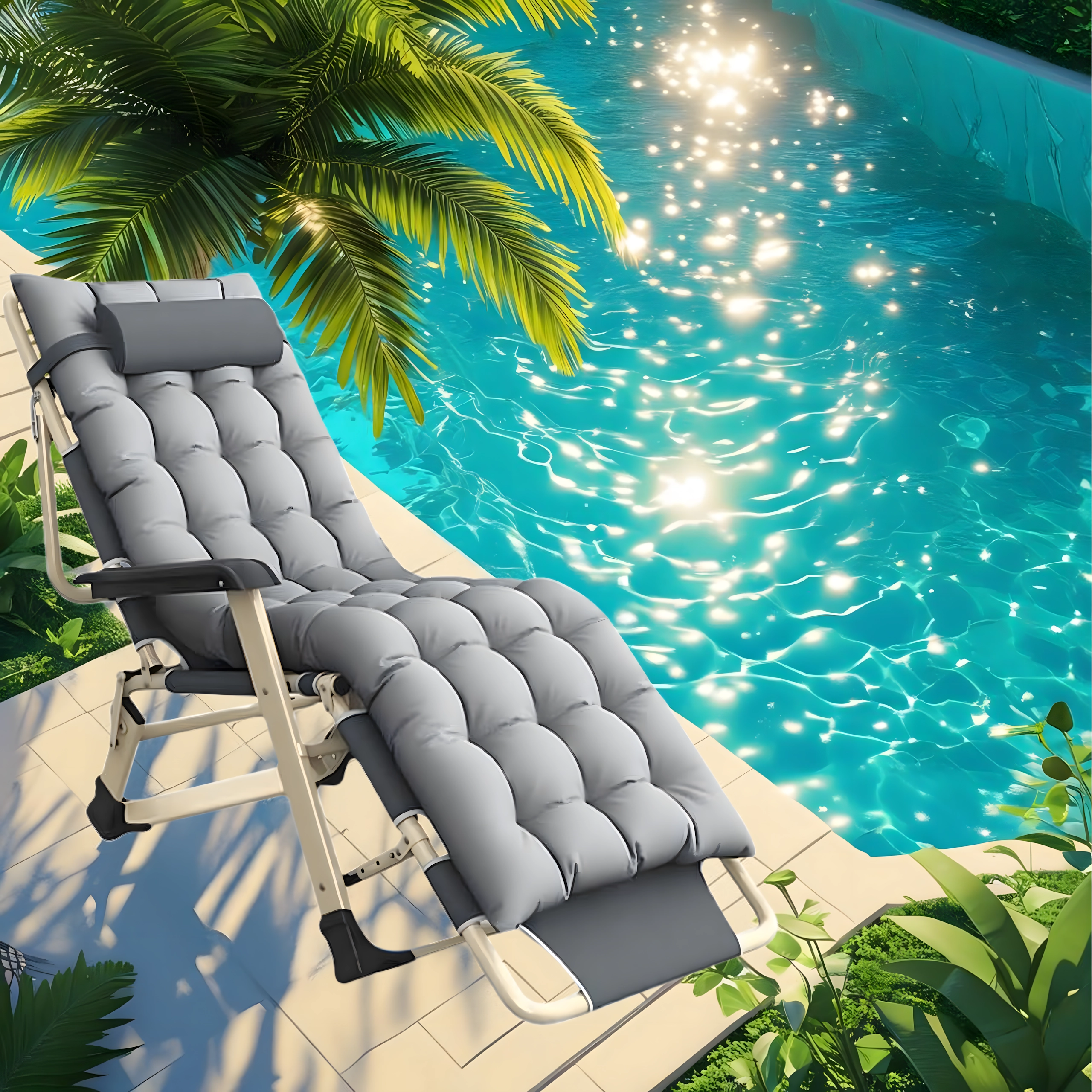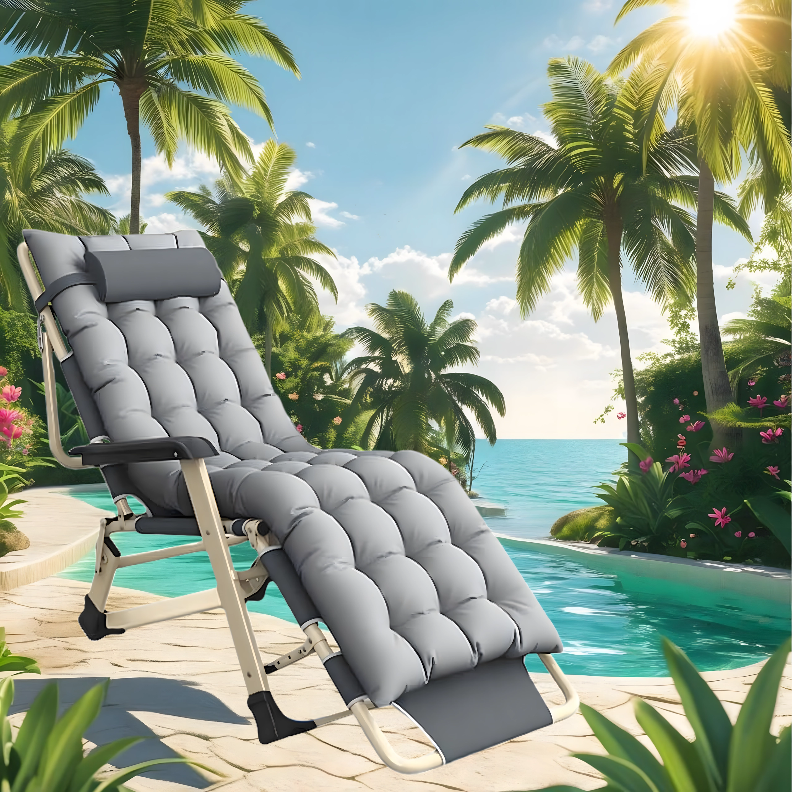 Η ξαπλώστρα διπλώνει εύκολα σε συμπαγείς διαστάσεις για απλή αποθήκευση και μεταφορά – ιδανική για βεράντα, μπαλκόνι ή διακοπές στη θάλασσα.
