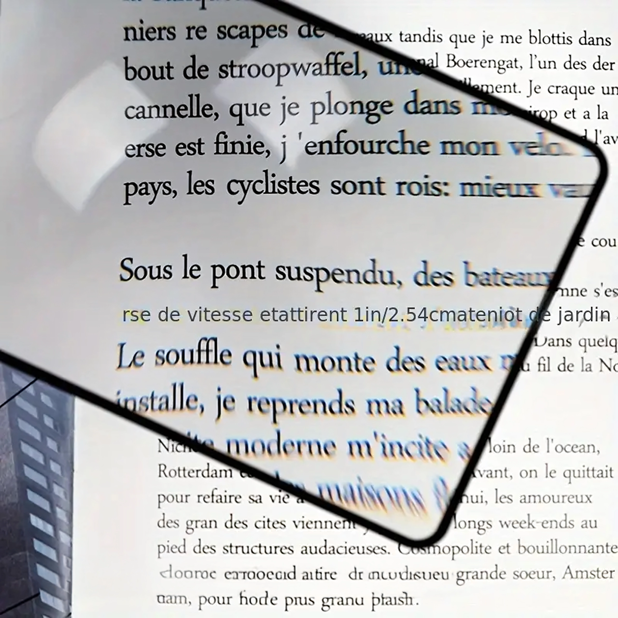 Ο εύκαμπτος πλαστικός φακός αντέχει στη συχνή χρήση και ταυτόχρονα προσφέρει καθαρή μεγέθυνση για άνετη ανάγνωση μικρών γραμμάτων.