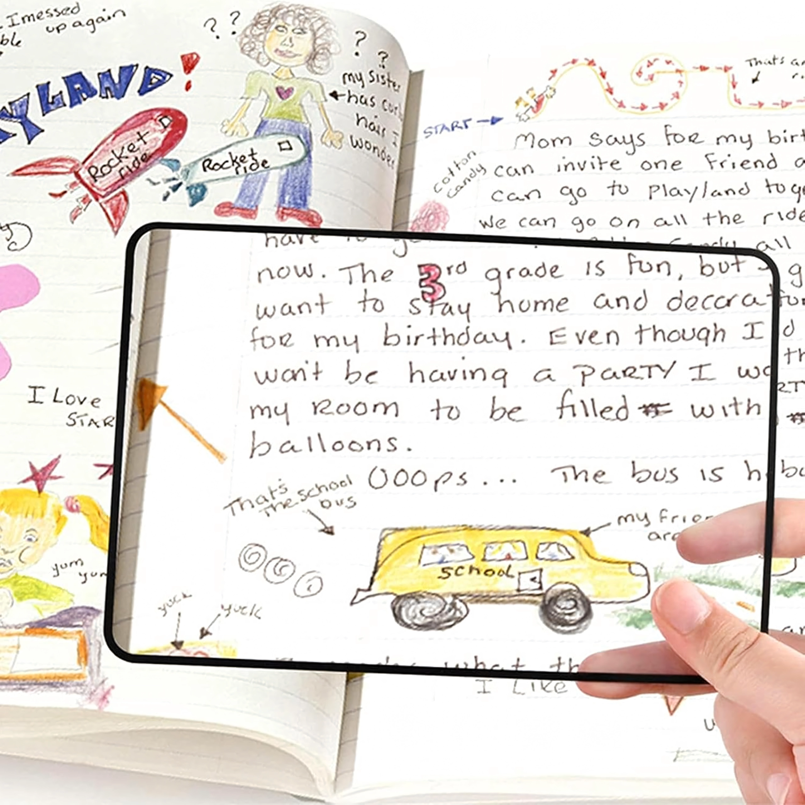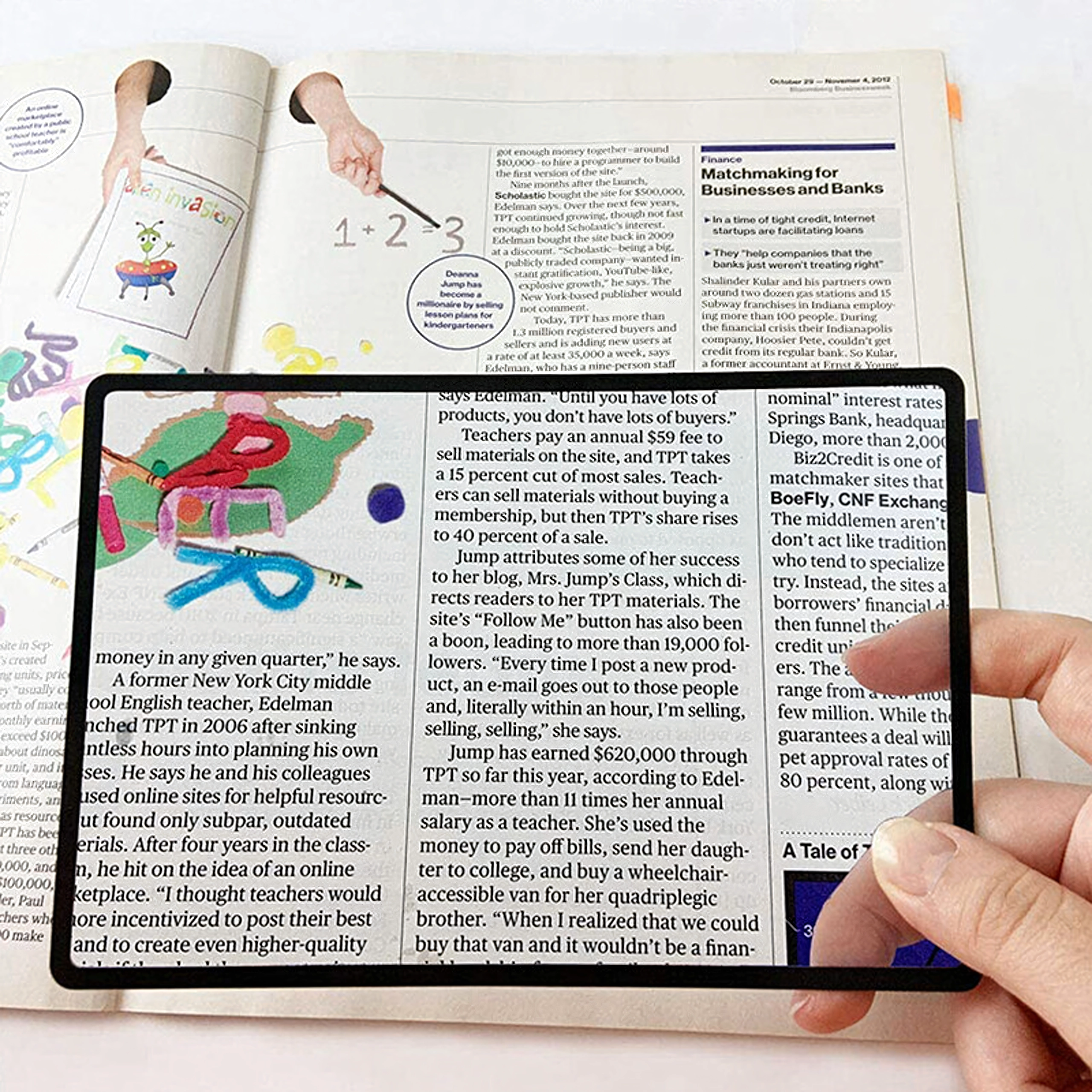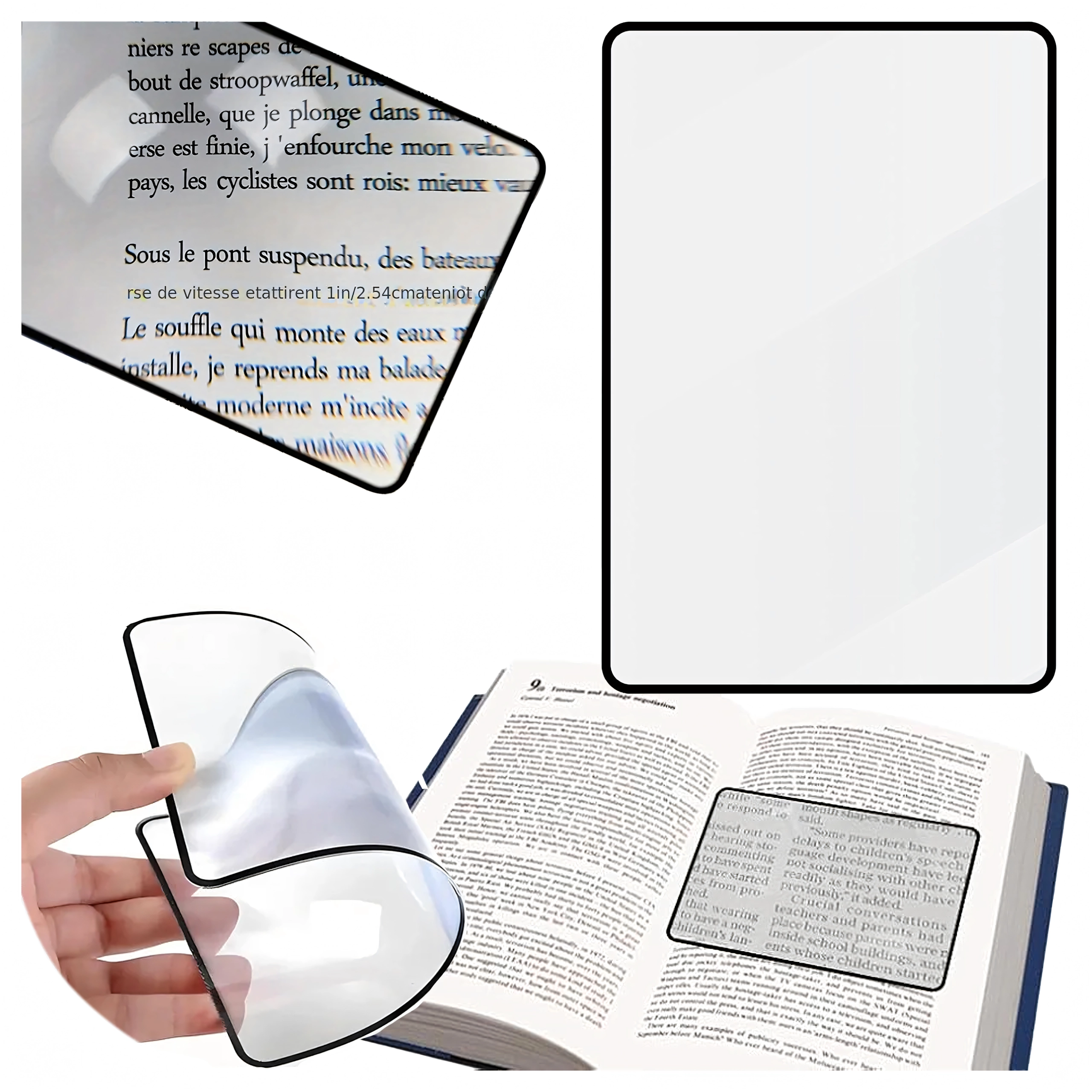 Πρακτικός μεγεθυντικός φακός σελίδας με εύκαμπτο πλαστικό φύλλο φακού που μεγεθύνει κείμενο και λεπτομέρειες έως 200%. Χάρη στον λεπτό σχεδιασμό με ελαφρύ πλαίσιο κρατιέται άνετα, μπορείτε να τον τοποθετήσετε απευθείας στη σελίδα και να διαβάζετε χωρίς κόπωση των ματιών.