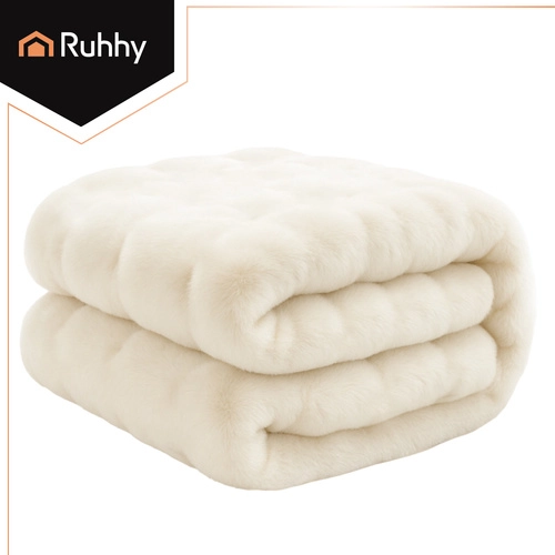 Απολαύστε άμεση άνεση με τη μαλακή και απαλή κουβέρτα RUHHY σε ουδέτερο λευκό. Είναι ελαφριά, ζεστή και εξαιρετικά ευχάριστη στην αφή. Χάρη στη διπλή της κατασκευή – επάνω πλευρά σαν γούνινο «κουνελάκι» και κάτω πλευρά απαλό βελούδο – προσφέρει μέγιστη άνεση. Εύκολη συντήρηση στο πλυντήριο στους 30 °C, ανθεκτικότητα στο χνούδιασμα και κομψή εμφάνιση την καθιστούν ιδανικό αξεσουάρ για κρεβατοκάμαρα και σαλόνι.