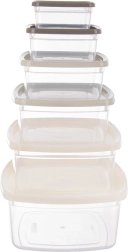 Τα δοχεία είναι κατάλληλα για επαφή με τρόφιμα, ανθεκτικά σε χαμηλές και υψηλές θερμοκρασίες και πλένονται στο πλυντήριο πιάτων. Είναι κατάλληλα για ψυγείο και κατάψυξη (-25 °C έως +95 °C). Χάρη στον στοιβαζόμενο και ενσωματούμενο σχεδιασμό τους, εξοικονομούν χώρο στο ντουλάπι της κουζίνας και βοηθούν στη διατήρηση τάξης και οργάνωσης σε κάθε σπίτι.