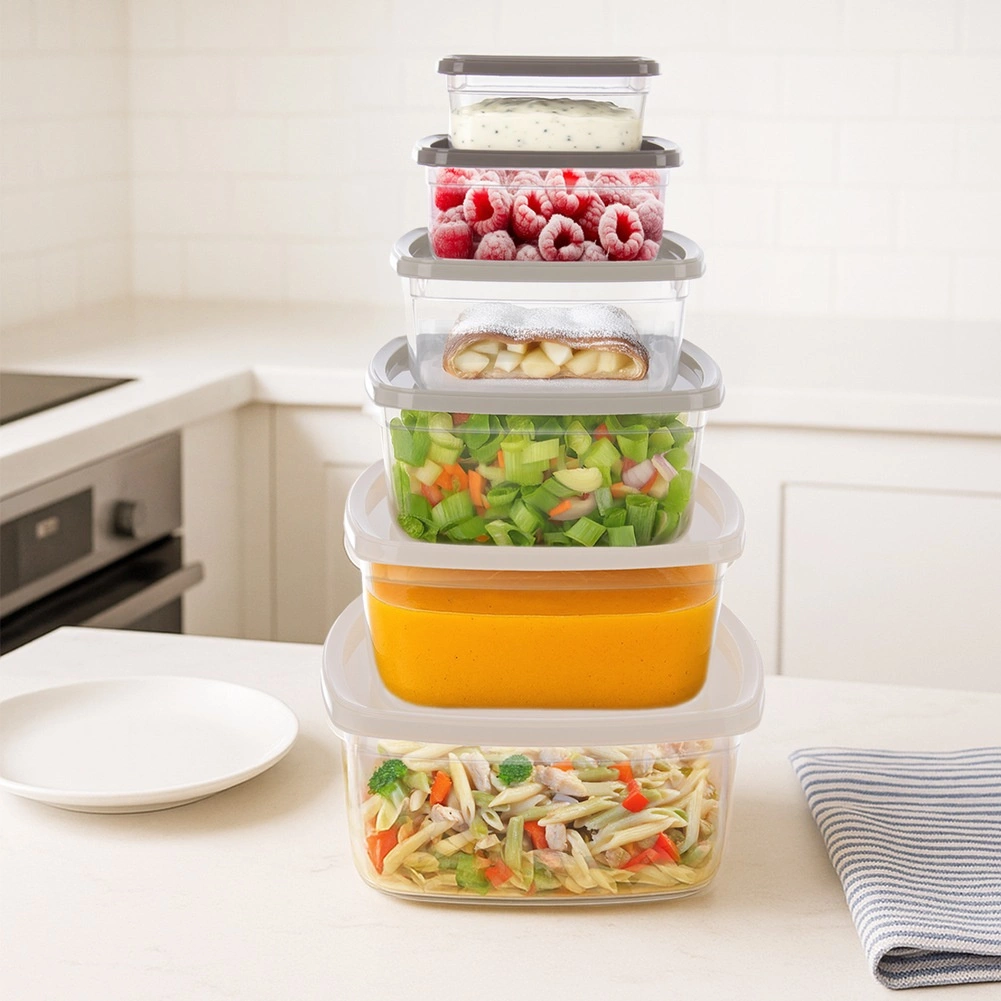 Κρατήστε τάξη στην κουζίνα με το πολυχρηστικό σετ δοχείων τροφίμων. Οι διαφορετικοί όγκοι από 275 ml έως 3,2 l καλύπτουν τα πάντα, από σνακ και σαλάτες έως ζυμαρικά ή υλικά για ψήσιμο. Τα διάφανα τοιχώματα επιτρέπουν γρήγορο έλεγχο περιεχομένου χωρίς άνοιγμα και τα καλά εφαρμοστά καπάκια εξασφαλίζουν αξιόπιστη στεγανότητα στην αποθήκευση και τη μεταφορά.