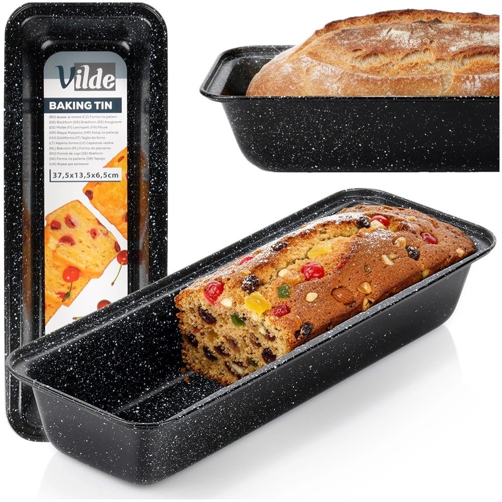 Αυτή η ορθογώνια φόρμα από ανθεκτικό ανθρακούχο ατσάλι με αντικολλητική επίστρωση γρανίτη είναι ιδανική για σπιτικό ψωμί, πατέ, κέξ, μπαμπόβκα και ζύμες που φουσκώνουν. Κατανέμει ομοιόμορφα τη θερμότητα, δεν απορροφά οσμές ή υγρά και το αρτοσκεύασμά σας θα είναι πάντα όμορφα και χρυσοψημένο.