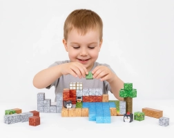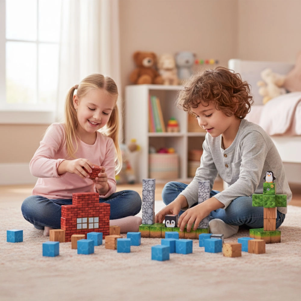 Αυτό το σετ πολύχρωμων μαγνητικών κύβων επιτρέπει στα παιδιά να χτίζουν πύργους, σπιτάκια, γέφυρες και ολόκληρα voxel τοπία. Χάρη στους ενσωματωμένους μαγνήτες, τα κομμάτια συνδέονται γρήγορα και με σιγουριά από όλες τις πλευρές – χωρίς απογοήτευση και με άμεση επιτυχία. Οι κύβοι με εκτυπώσεις γρασιδιού, ξύλου, πέτρας και νερού υποστηρίζουν το δημιουργικό παιχνίδι και τη δημιουργία θεματικών σκηνών.