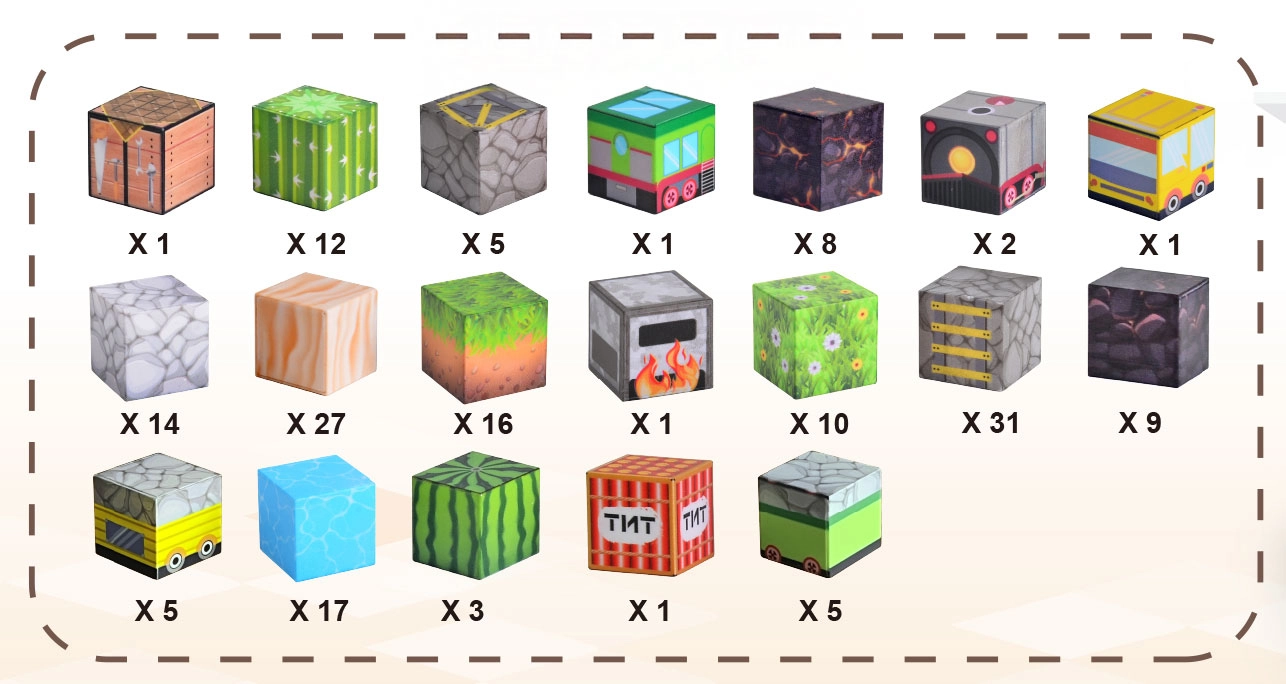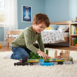 Πολύχρωμα τουβλάκια με εκτυπώσεις γρασιδιού, νερού, ξύλου ή πέτρας επιτρέπουν την κατασκευή τοπίων, γεφυρών και γραμμών για ατελείωτο παιχνίδι.