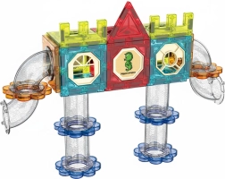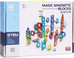 Αυτή η μαγνητική πίστα για μπίλιες συνδυάζει διαφανείς σωλήνες, ράμπες και μαγνητικά πάνελ, ώστε τα παιδιά να βλέπουν καθαρά την κίνηση των μπιλιών και να μαθαίνουν φυσικά τις αρχές της βαρυτικής επιτάχυνσης, της ορμής και του σχεδιασμού διαδρομής. Τα κομμάτια έλκονται αυτόματα μεταξύ τους και συγκρατούνται σταθερά, ώστε η κατασκευή να είναι γρήγορη, διαισθητική και χωρίς απογοητεύσεις.