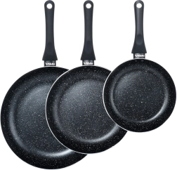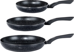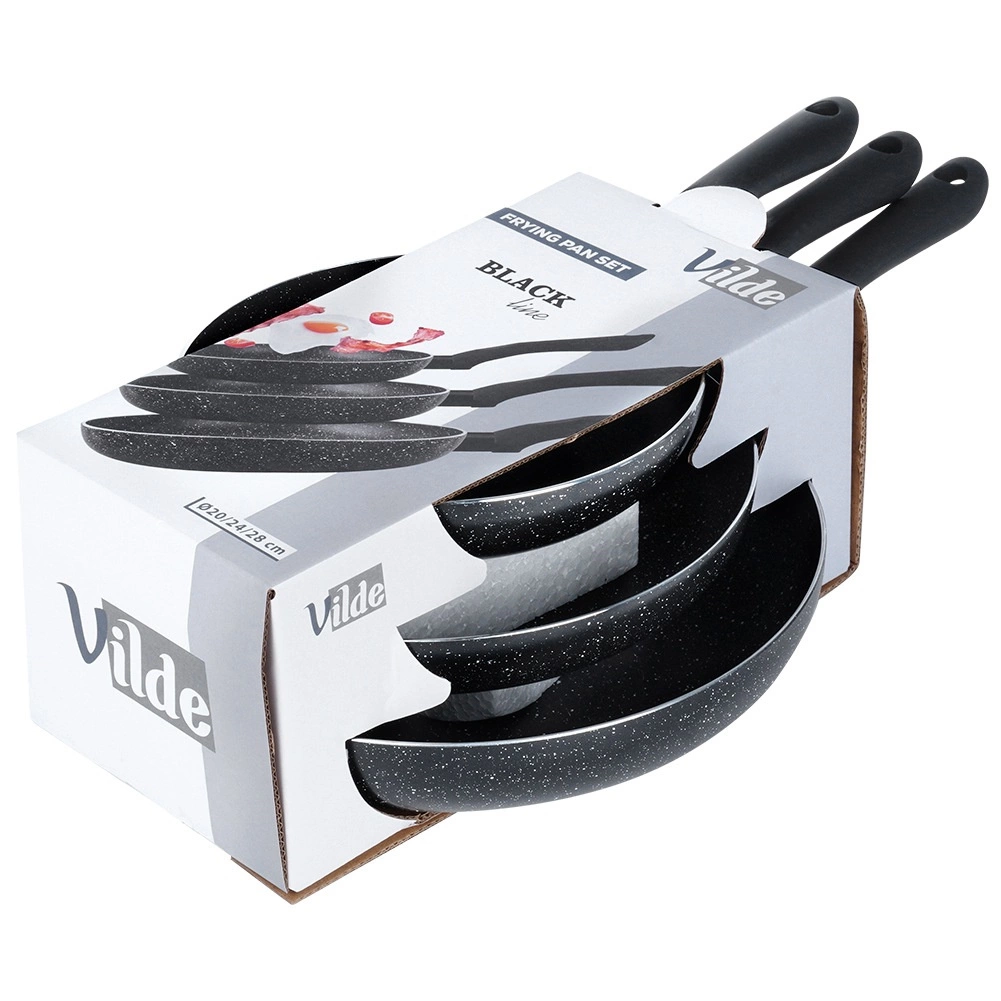 Το σετ τριών τηγανιών BLACK LINE συνδυάζει ποιοτικό χυτό αλουμίνιο για γρήγορη αγωγή θερμότητας και ανθεκτική αντικολλητική γρανιτένια στρώση για πιο υγιεινό μαγείρεμα. Χάρη στα τρία μεγέθη, ετοιμάζετε εύκολα αυγά, λαχανικά και μπριζόλες – πάντα με ομοιόμορφη κατανομή θερμότητας και εύκολη απελευθέρωση του φαγητού.