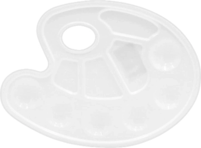 Πρακτική παλέτα για ζωγραφική με ακρυλικά, τέμπερες και νερομπογιές. Προσφέρει πολλές εσοχές για ανάμειξη χρωμάτων, είναι ελαφριά, κρατιέται άνετα και καθαρίζεται εύκολα – ιδανική για μαθητές, χομπίστες καλλιτέχνες και αρχάριους ζωγράφους.