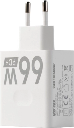Αυτός ο ισχυρός λευκός φορτιστής είναι ιδανικός για τα τηλέφωνα σειράς Ulefone ARMOR και άλλες συσκευές με USB‑C. Χάρη στην ισχύ 66 W μειώνει σημαντικά τον χρόνο φόρτισης και εξασφαλίζει σταθερή ενέργεια στο σπίτι και στο ταξίδι.