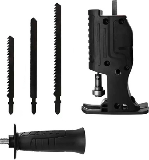Μετατρέψτε το συνηθισμένο σας δράπανο σε ένα πρακτικό παλινδρομικό πριόνι. Αυτός ο καθολικός προσαρμογέας σφίγγεται στο τσοκ όπως ένα κλασικό τρυπάνι διαμέτρου 7 mm, διαθέτει άνετη πλαϊνή λαβή για σταθερή καθοδήγηση της κοπής και προστατευτικό κάλυμμα για πιο ασφαλή εργασία. Στη συσκευασία θα βρείτε 3 διαφορετικές λεπίδες πριονιού για διάφορους τύπους κοπών.