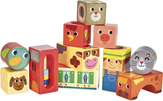 Σας παρουσιάζουμε τα Vilac Ξύλινα ηχητικά τουβλάκια Φάρμα, ένα υπέροχο παιχνίδι για μικρούς εξερευνητές. Αυτό το σετ περιλαμβάνει έντεκα ξύλινα τουβλάκια, το καθένα με διαφορετικά μοτίβα φάρμας, που κατά την περιστροφή και το κούνημα παράγουν διαφορετικούς ήχους.