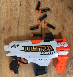 Απολαύστε δυναμική διασκέδαση με το NERF Ultra AMP, που συνδυάζει μηχανική κίνηση για γρήγορες βολές, εργονομική λαβή για σίγουρο κράτημα και ενσωματωμένο σκοπευτήρα για καλύτερη ακρίβεια. Ο συμπαγής σχεδιασμός διευκολύνει τον χειρισμό τόσο σε παιδιά όσο και σε ενήλικες.