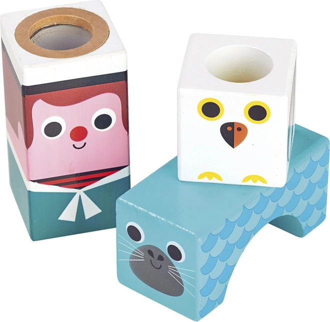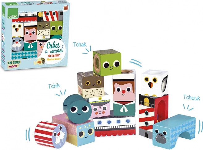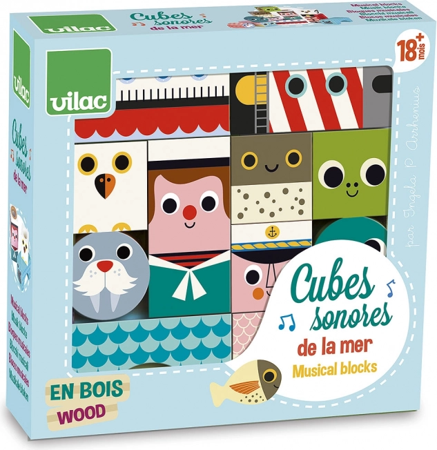 Αισθητηριακοί ξύλινοι κύβοι με θαλάσσια μοτίβα που προσφέρουν στα παιδιά χαρά στην ανακάλυψη σχημάτων, χρωμάτων και ήχων. Με το κούνημα και το χτίσιμο, τα παιδιά εξασκούν τη λαβή, τον συντονισμό και τη συγκέντρωση, ενώ τα διαφορετικά ηχητικά στοιχεία ενισχύουν την ακουστική τους αντίληψη. Οι εικονογραφήσεις της Ingela P. Arrhenius προσδίδουν στο σετ μοναδική ρετρό αίσθηση και παιχνιδιάρικο χαρακτήρα.