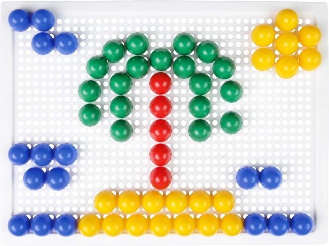 Το σετ περιλαμβάνει πλαστικό πλέγμα 21 × 16 cm και 80 καρφάκια διαμέτρου 15 mm. Χάρη στις κομπάκτ διαστάσεις, είναι ιδανικό για το σπίτι και τα ταξίδια. Το ψηφιδωτό δεν περιλαμβάνει πρότυπα – ενθαρρύνει έτσι τη ελεύθερη παιχνίδι και φαντασία.