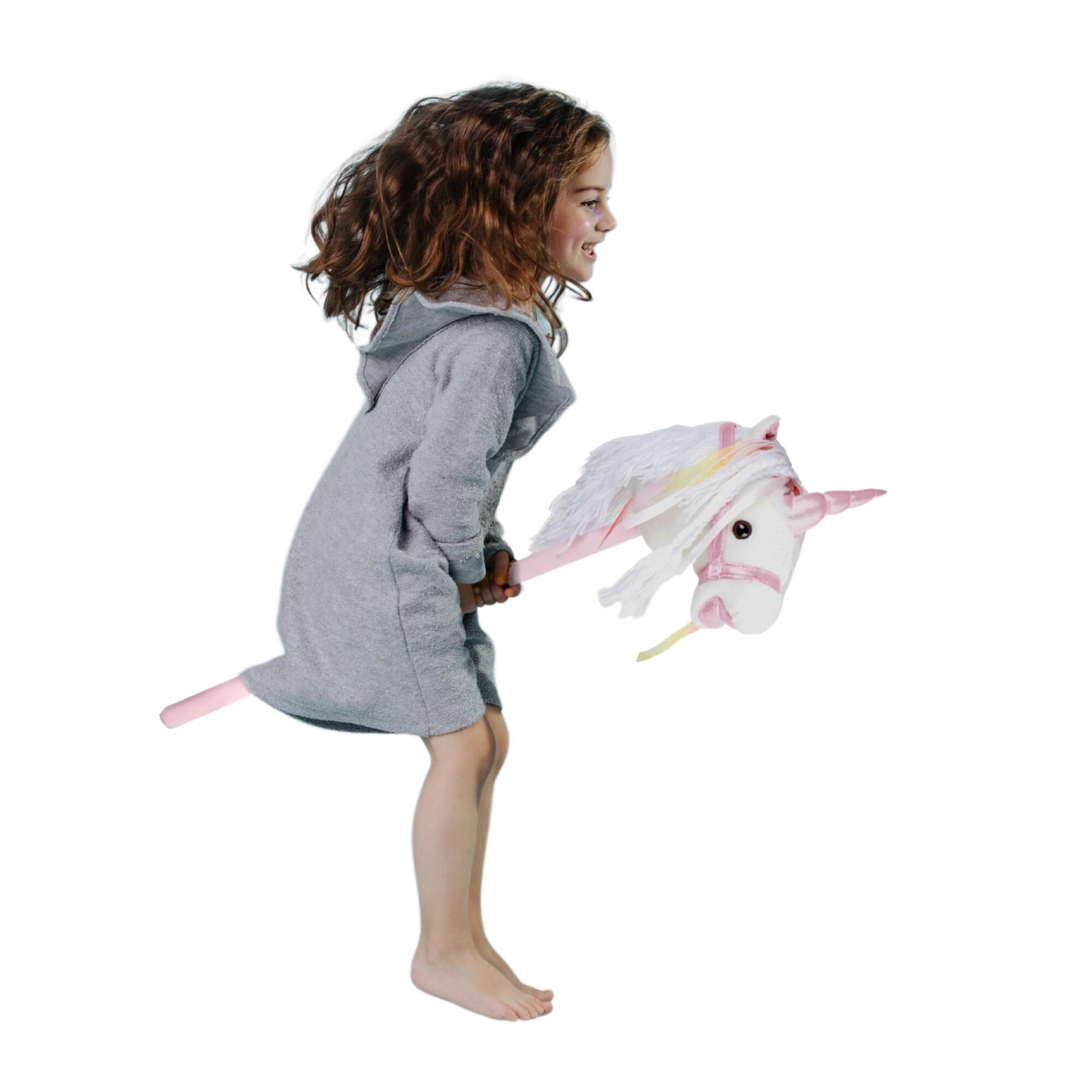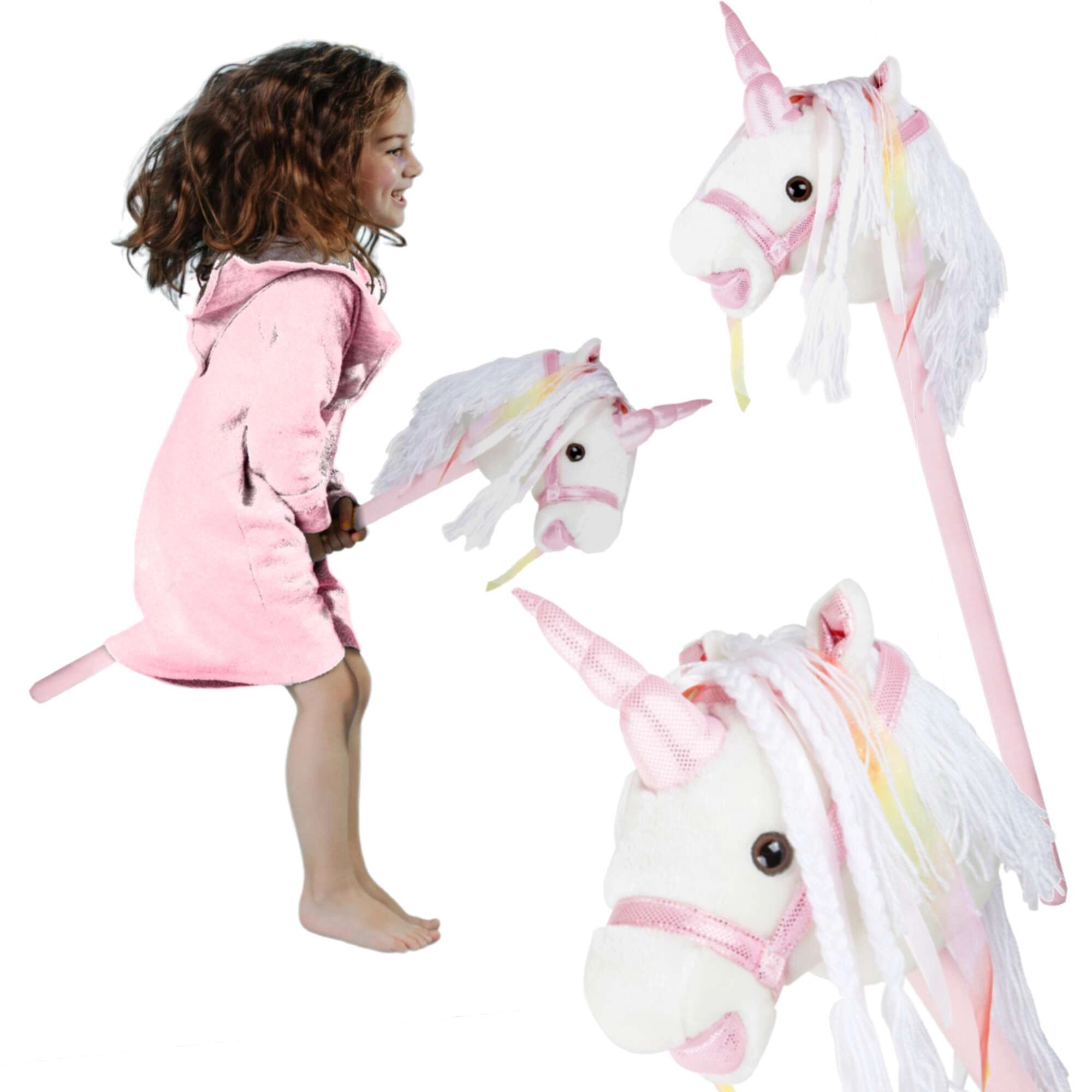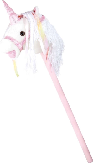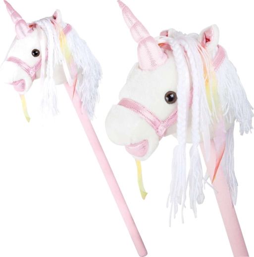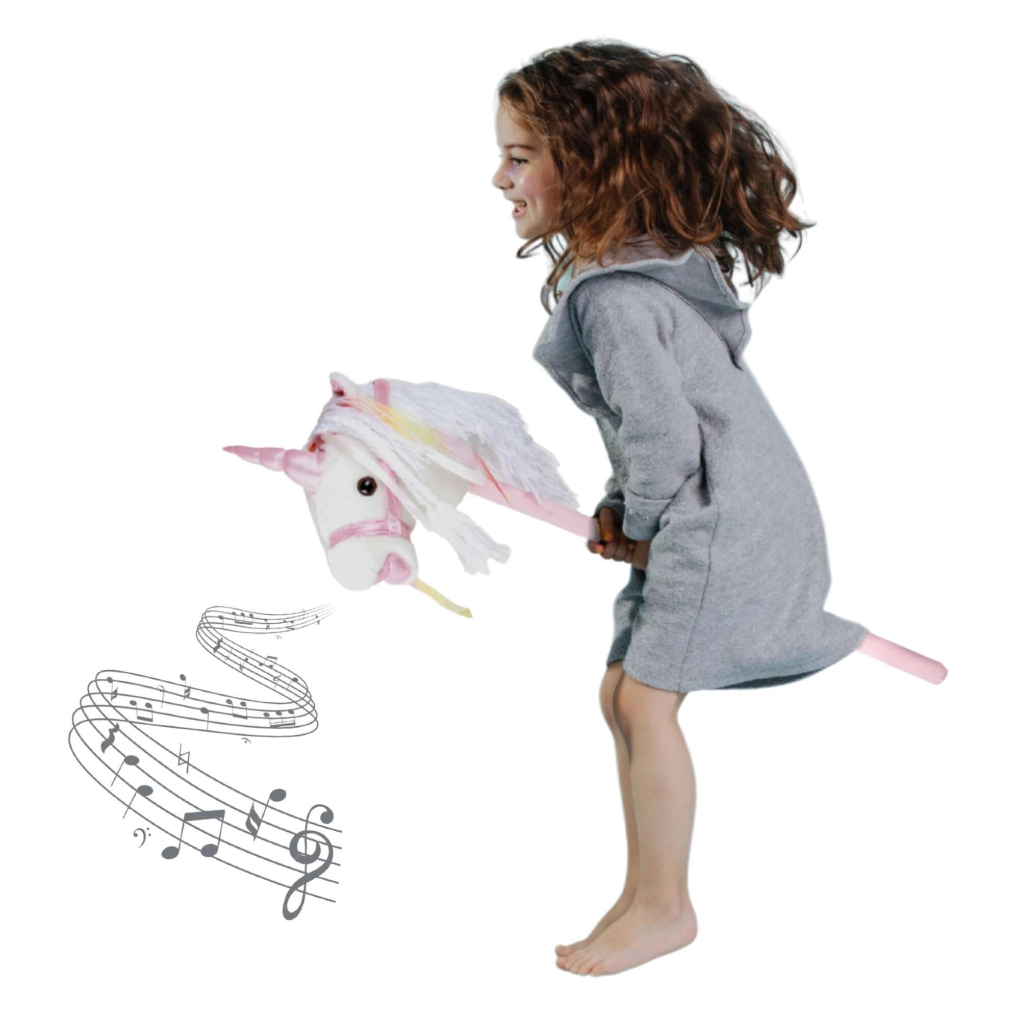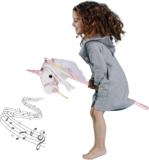 Αυτός ο μονόκερος σε κοντάρι υποστηρίζει κίνηση, φαντασία και παιχνίδι ρόλων. Το απαλό λούτρινο ύφασμα είναι ευχάριστο στην αφή, ενώ η διακοσμητική χαίτη και οι κορδέλες χαρίζουν σε κάθε «βόλτα» μια μαγική ατμόσφαιρα. Με το πάτημα του κουμπιού στο αυτί ακούγονται ρεαλιστικοί ήχοι καλπασμού και χλιμιντρίσματος, που κάνουν το ιππικό παιχνίδι ακόμη πιο ζωντανό για τα παιδιά.
