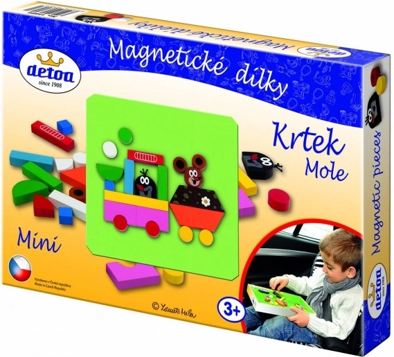 Ανακαλύψτε τη μαγεία του κλασικού τσεχικού παιχνιδιού με τα μαγνητικά κομμάτια Detoa, εμπνευσμένα από τον αγαπημένο Krteček. Τα ξύλινα στοιχεία έχουν επένδυση μαγνήτη, ώστε να εφαρμόζουν άψογα σε μαγνητικούς πίνακες, στο ψυγείο ή σε άλλες μεταλλικές επιφάνειες. Το σετ είναι ιδανικό για ελεύθερο παιχνίδι, δημιουργία ιστοριών και τα πρώτα βήματα στη δημιουργική απασχόληση.