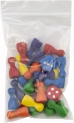 Στη συσκευασία περιλαμβάνονται επίσης δύο στάνταρ ζάρια, ώστε να έχετε ό,τι χρειάζεστε για άμεσο παιχνίδι. Το συμπαγές σακουλάκι με zip διαστάσεων 7×13 cm κρατά πιόνια και ζάρια μαζί και είναι πρακτικό για το ταξίδι.