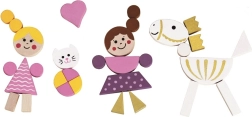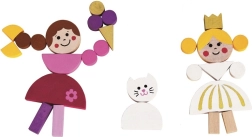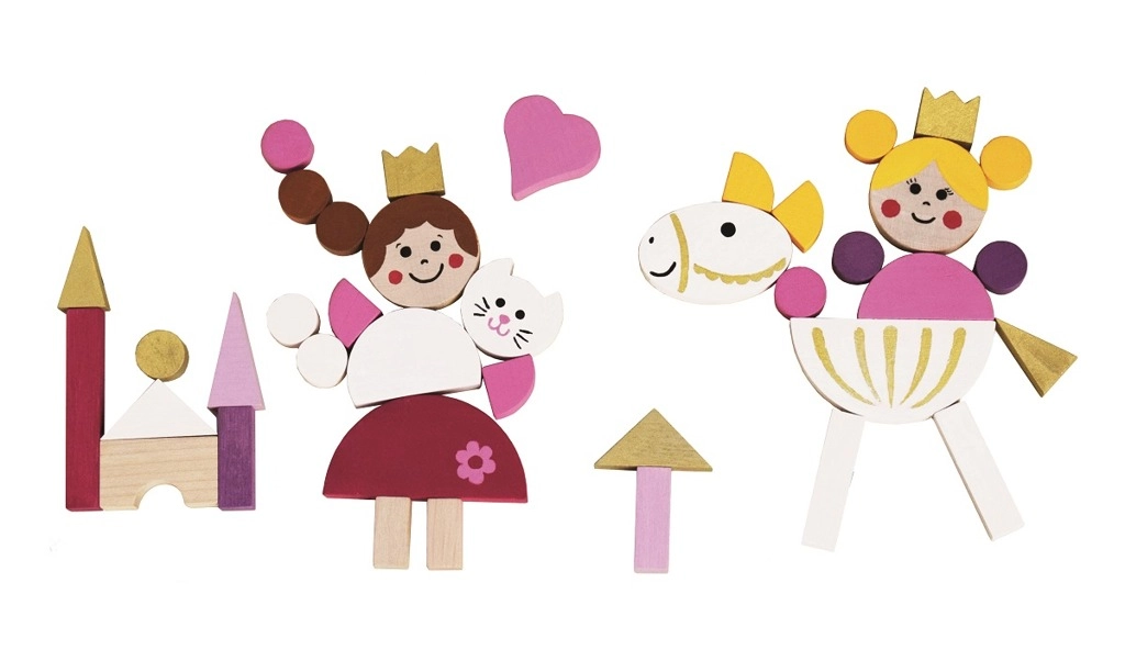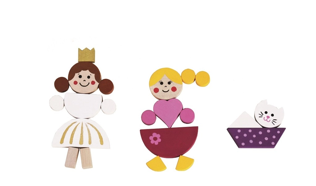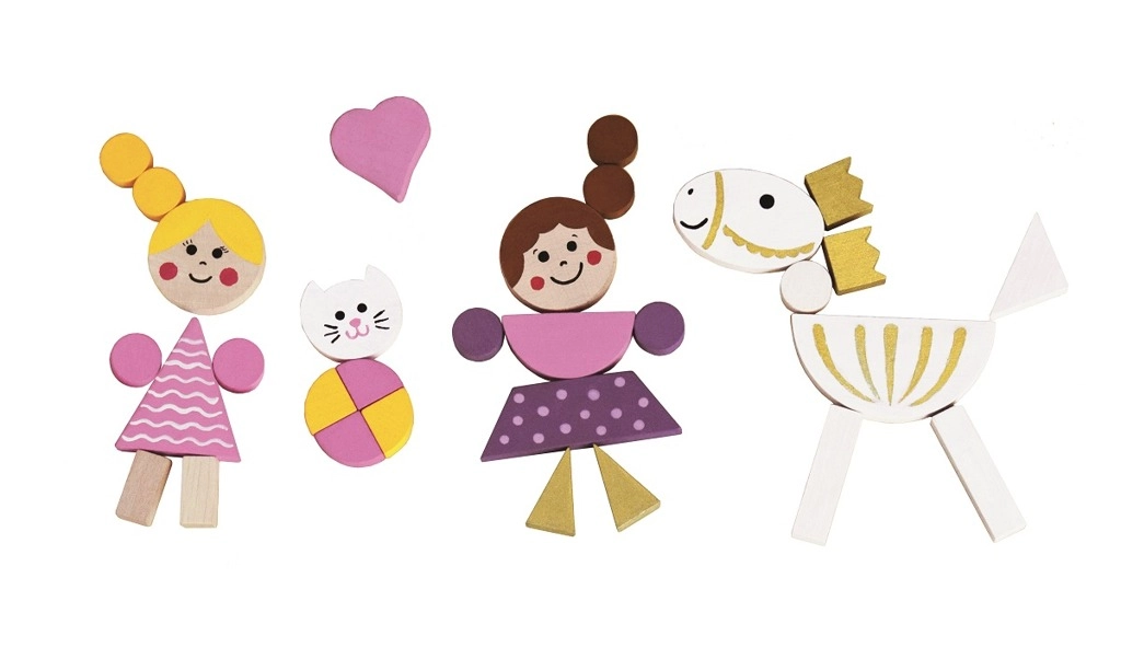 Πολύχρωμα ξύλινα κομμάτια με μαγνήτη συνδυάζονται εύκολα σε φιγούρες, ζωάκια και κάστρα. Τα παιδιά δημιουργούν τα δικά τους παραμύθια και σκηνές ακριβώς όπως τα φαντάζονται.