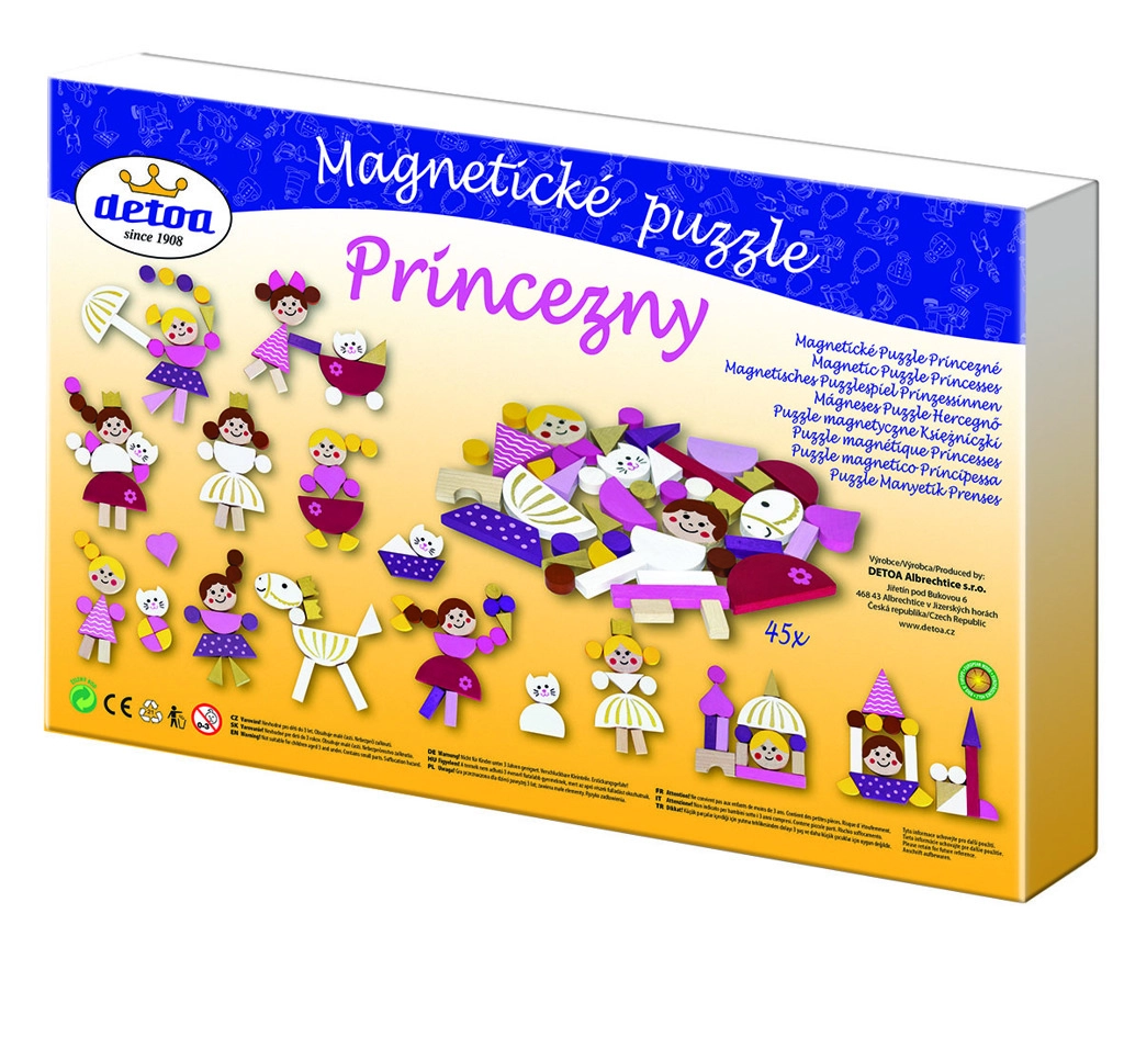 Τα μαγνητικά παζλ Detoa με θέμα τις πριγκίπισσες προσφέρουν ώρες διασκεδαστικής δημιουργίας. Τα παιδιά μπορούν να συνδυάζουν τα πολύχρωμα ξύλινα κομμάτια με μαγνήτη και να συναρμολογούν δικές τους φιγούρες, ζωάκια και μικρά κάστρα. Ο μαγνητικός πίνακας κρατά τα πάντα σταθερά στη θέση τους, ενώ η βάση επιτρέπει την όμορφη έκθεση των τελικών δημιουργιών.
