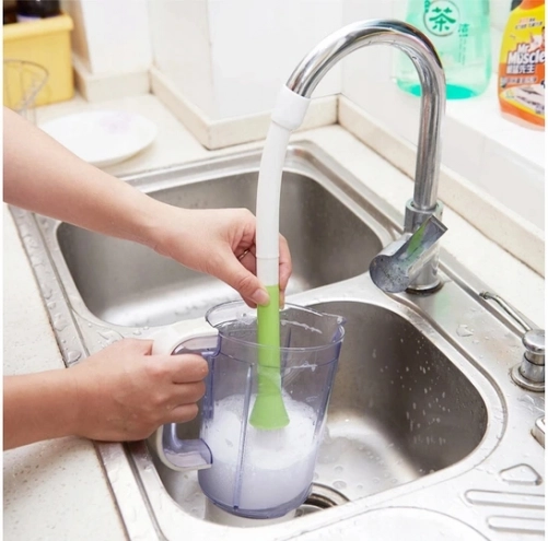 Η εύκαμπτη βούρτσα για μπαταρία νερού μετατρέπει την κάνουλά σας σε έναν έξυπνο βοηθό για γρήγορο και υγιεινό πλύσιμο. Το σιλικονούχο εξάρτημα εξασφαλίζει ασφαλή στερέωση, ενώ η καμπύλη κεφαλή με τρίχες αφαιρεί εύκολα καμένα και ξεραμένα υπολείμματα τροφών.