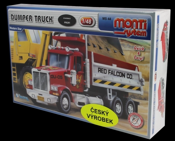 Monti System MS 44 – Dumper Truck είναι ένα δημοφιλές σετ κατασκευής χωρίς ανάγκη για κόλληση ή βαφή. Τα επιμέρους κομμάτια εφαρμόζουν με ακρίβεια, ώστε η συναρμολόγηση να είναι γρήγορη, καθαρή και διασκεδαστική. Στην κλίμακα 1:48 αποκτάτε ένα ελκυστικό μοντέλο ανατρεπόμενου φορτηγού WESTERN STAR, που θα ενθουσιάσει μικρούς και μεγάλους λάτρεις της τεχνολογίας.
