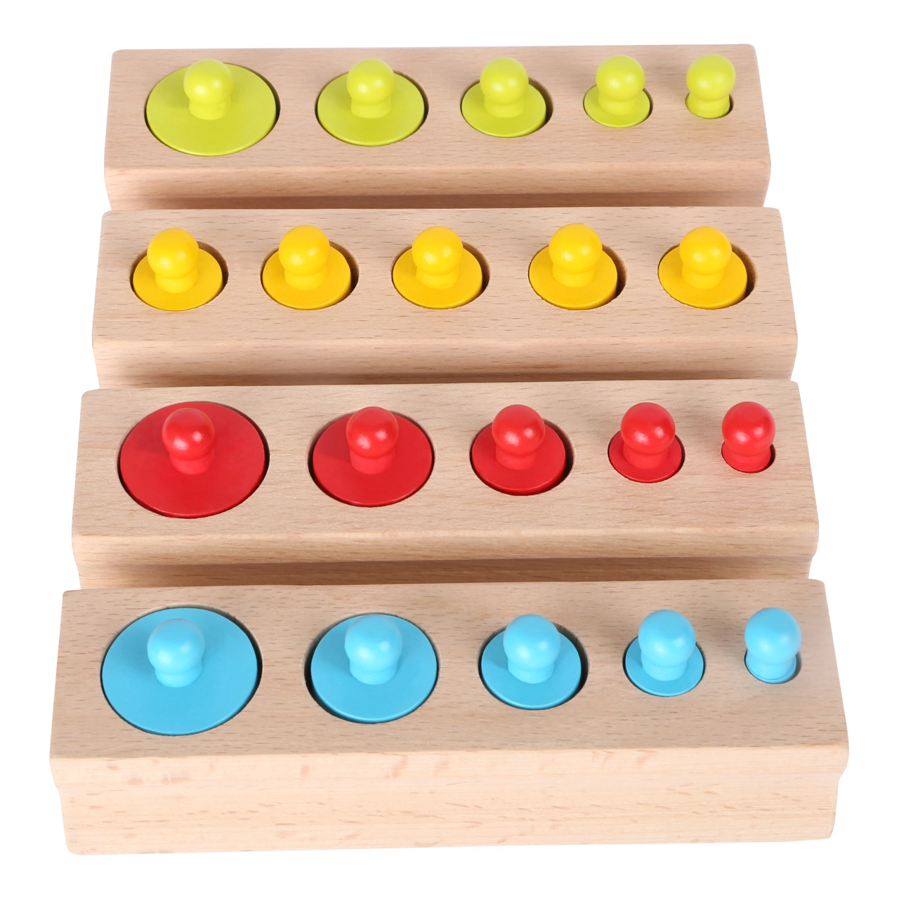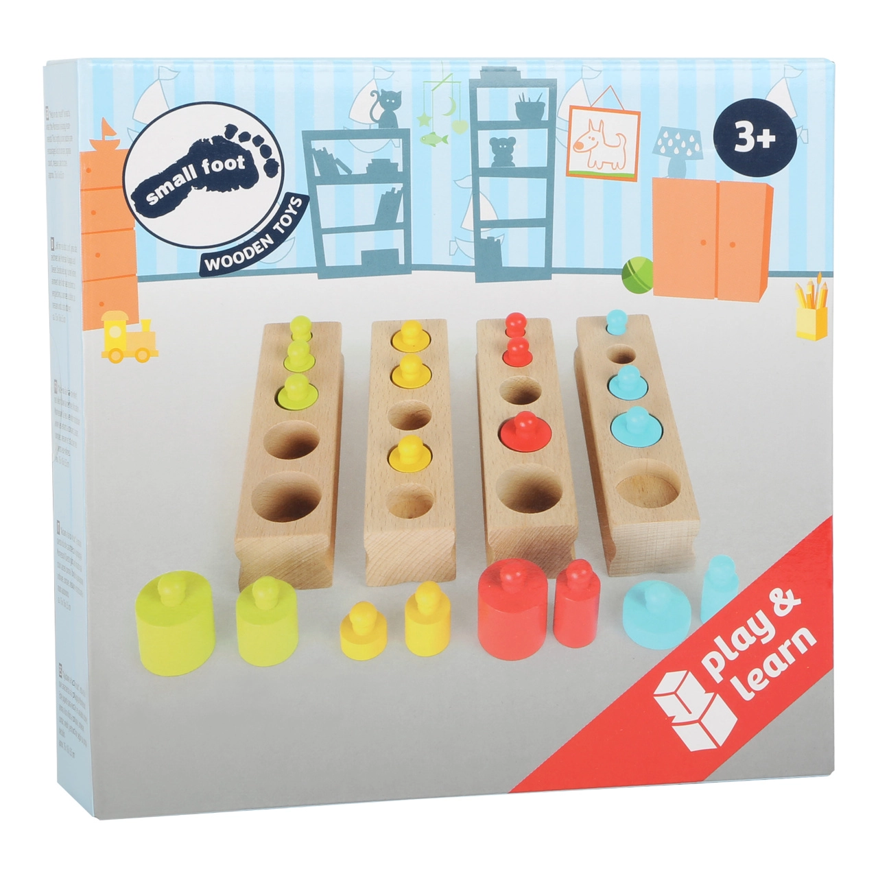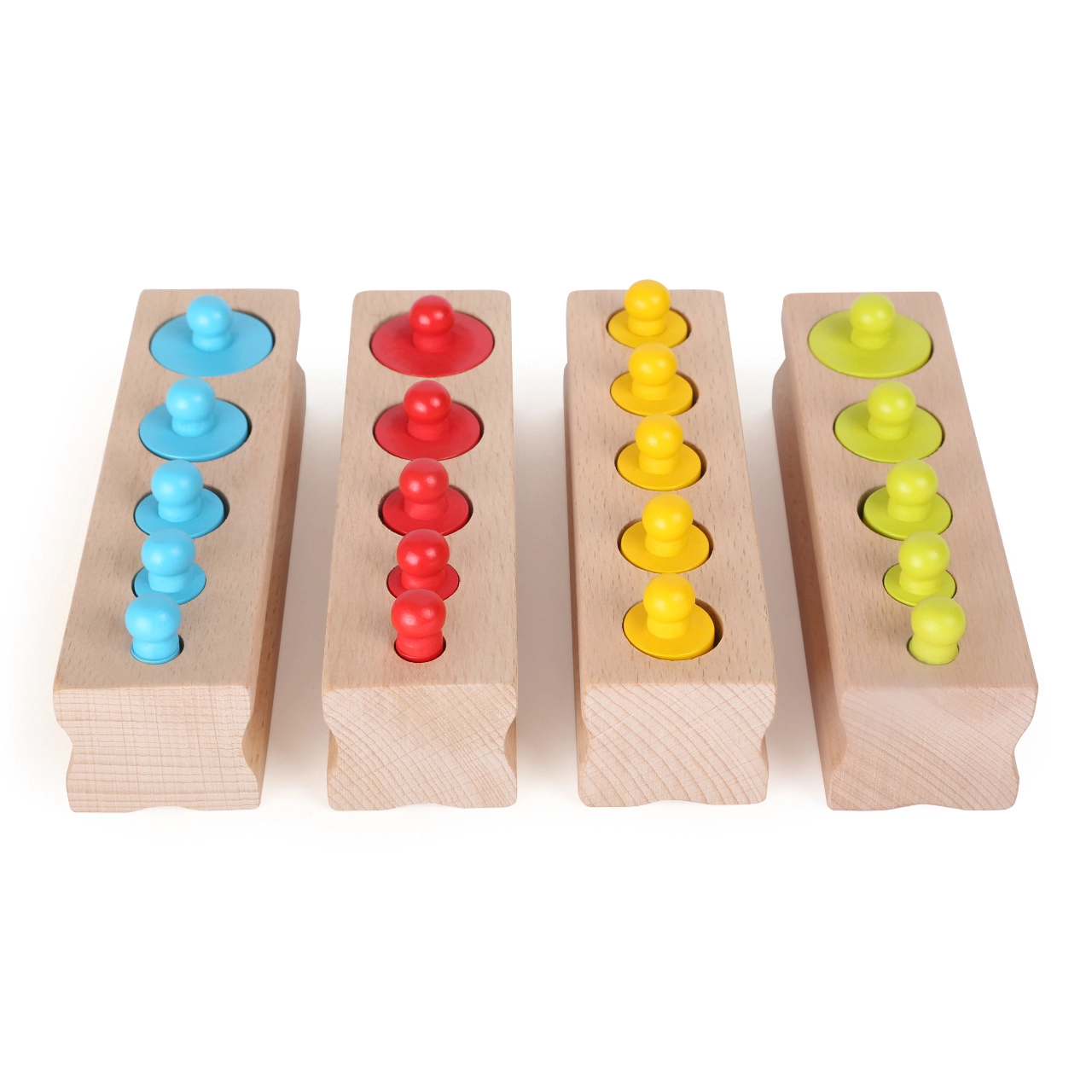 Οι ξύλινοι πολύχρωμοι κύλινδροι βοηθούν τα παιδιά να κατανοούν μοτίβα και να λαμβάνουν αποφάσεις για τη σωστή τοποθέτηση.